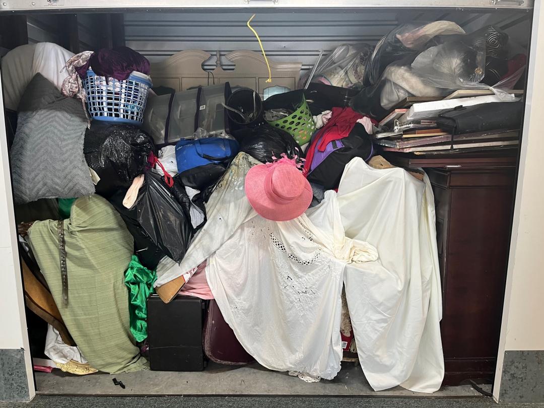 This unit appears to contain…china cabinet, clothes, hat, dresser, boxes, totes,