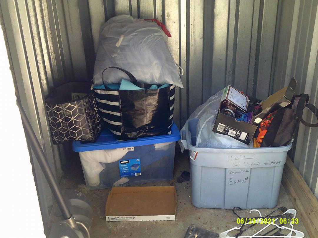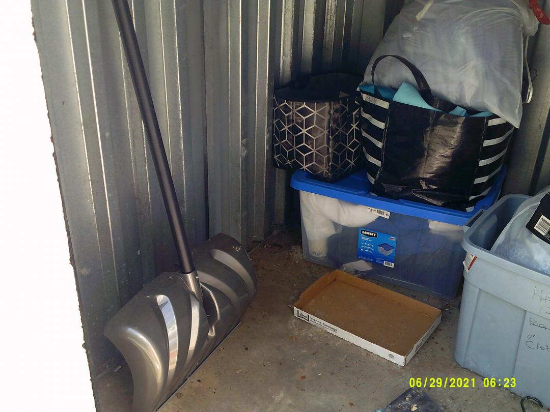 This unit appears to contain…READ ALL AUCTION RULES BEFORE BIDDING!!! Unit appears to contain: Shovel, totes, bags, hangers