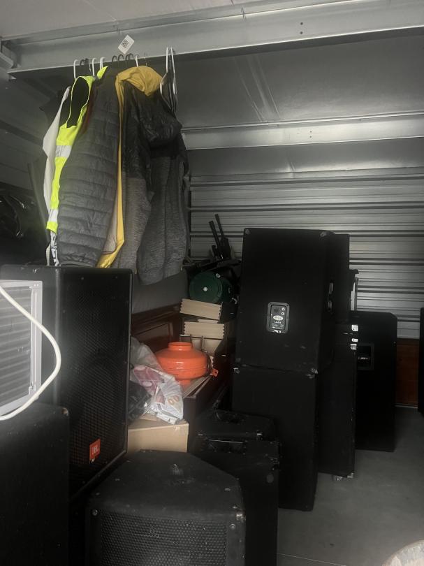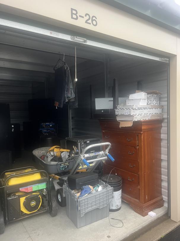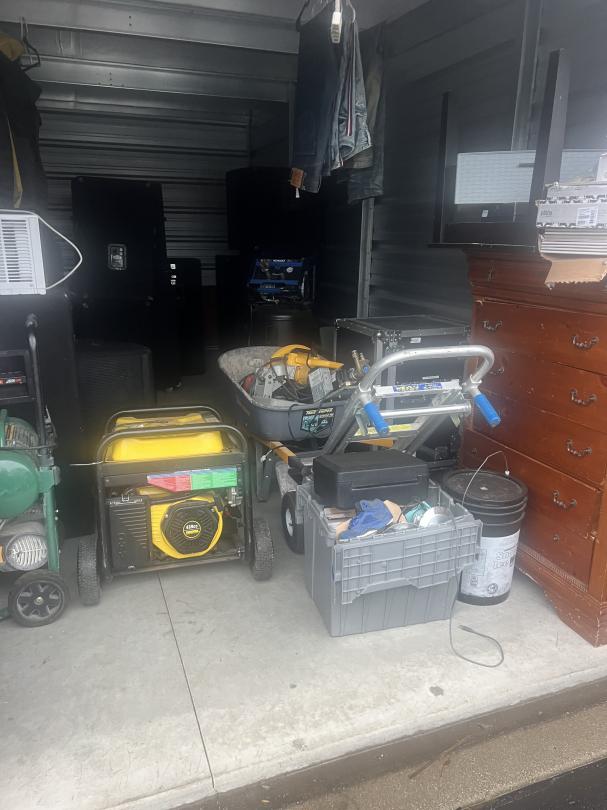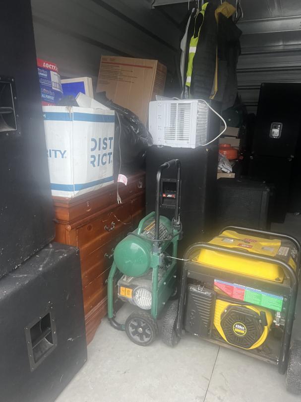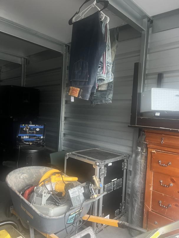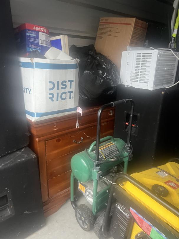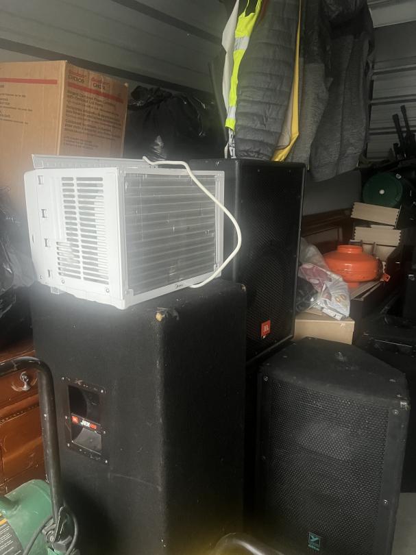 This unit appears to contain…music equipment, clothes, tools, dresser, window ac unit