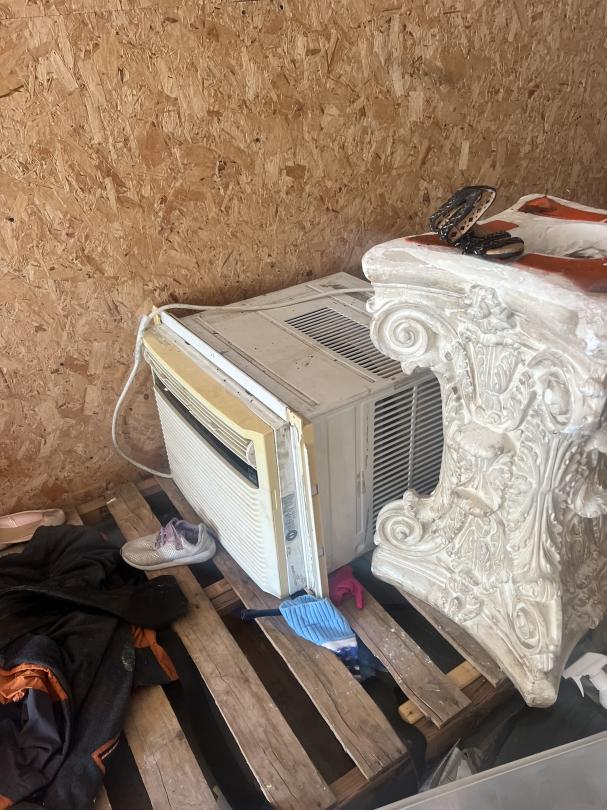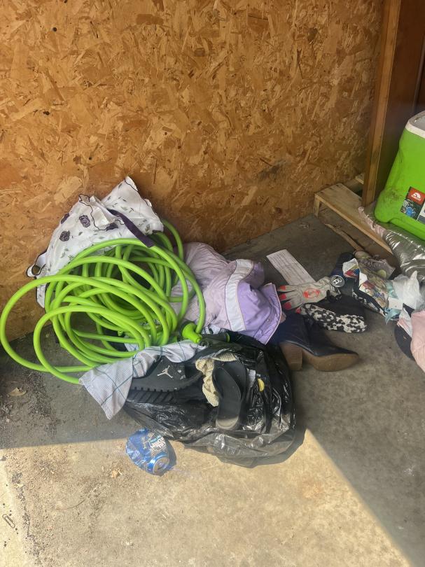 Tags: | A/C Unit, clothes, End Table, Framed Wall Art, Garden Hose, Refrigerator, Shoes, Stove |