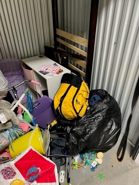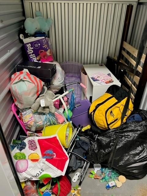 This unit appears to contain…Bags. Toys, Diaper Box, Back Pack, Cubby Organizer.