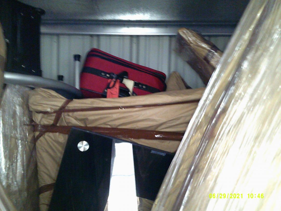 This unit appears to contain…READ ALL AUCTION RULES BEFORE BIDDING!!! Unit appears to contain: HIghtop table, weight bar, weights, suitcases, wrapped furniture, bar stools, lamps