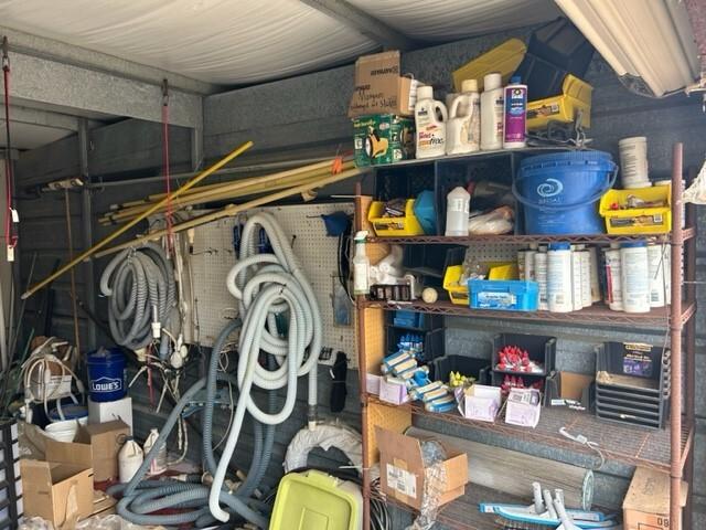This unit appears to contain…POOL SUPPLIES