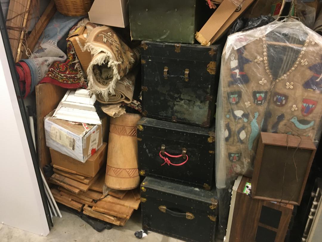 This unit appears to contain…Many African Artifacts, 4 Wardrobe Chests, Many Rugs, Speaker System Amps, Clothes.