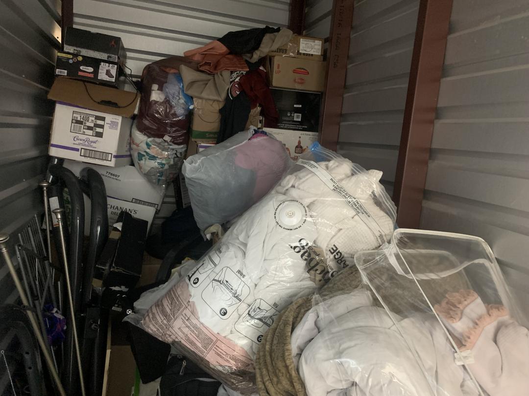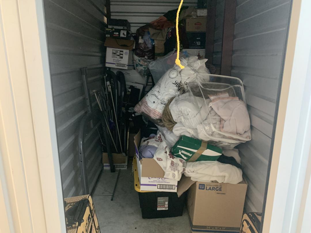 This unit appears to contain…Climate Controlled First Floor, work out bench, 2 suit cases, tote, misc. box,bedding, work boots, curtain rod