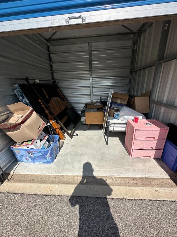 This unit appears to contain…Bed frame, box spring, twin mattress, household items