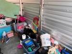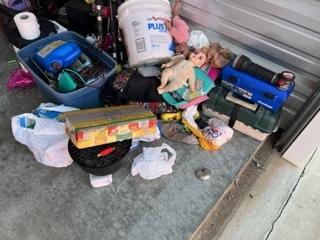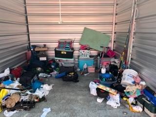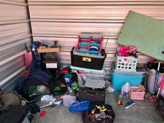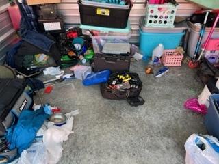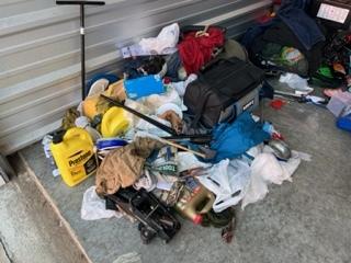 This unit appears to contain…Auto Jack, Suitcase, Clothes, Toys, Fishing Poles, Tackle Boxes, Totes, Scooters