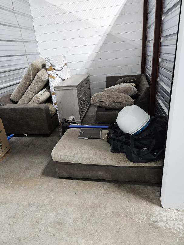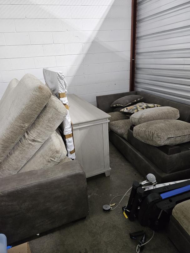 This unit appears to contain…DRESSER, SECTIONAL SOFA, BOX, FITNESS EQUIPMENT