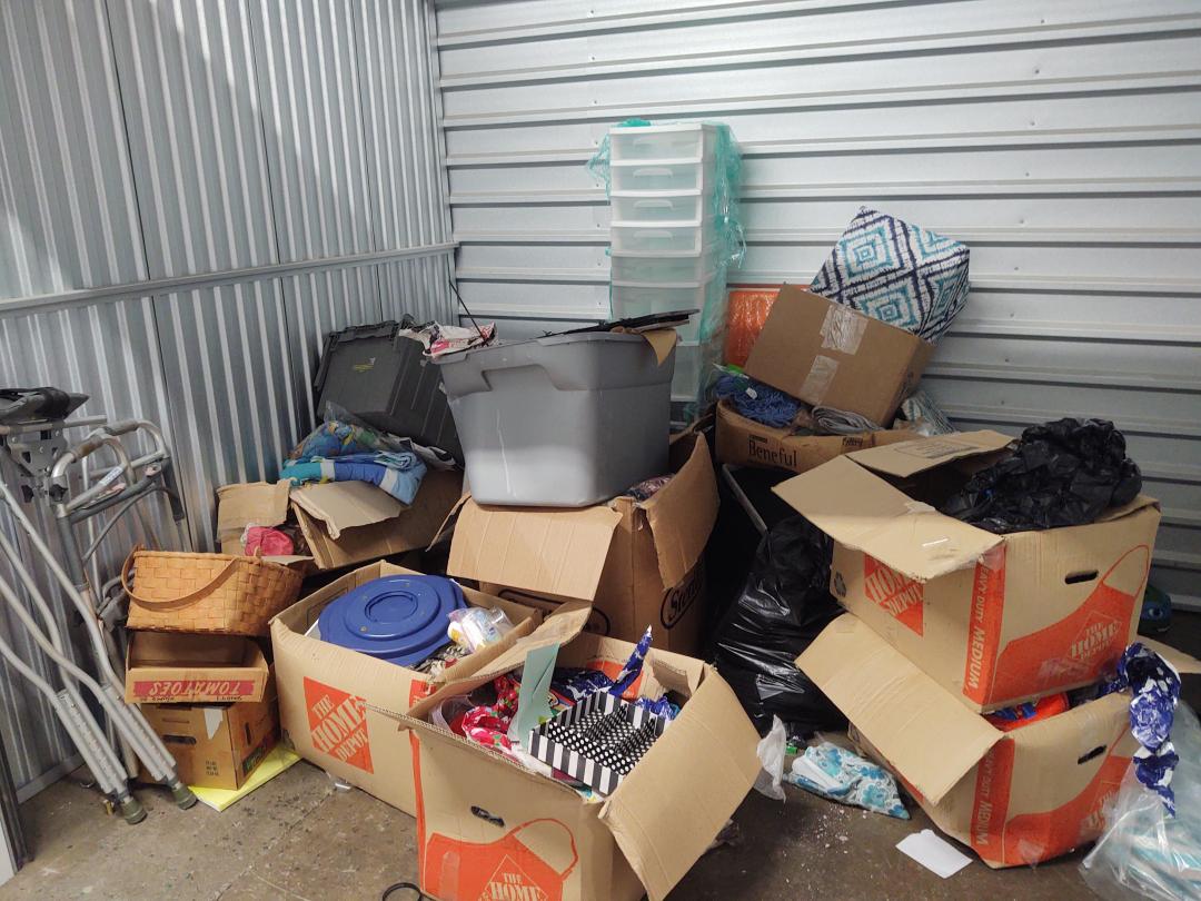 This unit appears to contain…Boxes, Clothes, Plastic Organizers, Toys