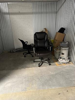 This unit appears to contain…two office chairs, rug, space heater, misc boxes