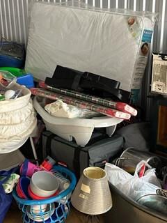 This unit appears to contain…chils mattress, toys, lamp, vaccumm, bassonet, vrious other items and clothing
