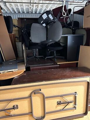 This unit appears to contain…filled to the brim with office furniture: desks, chairs, tables