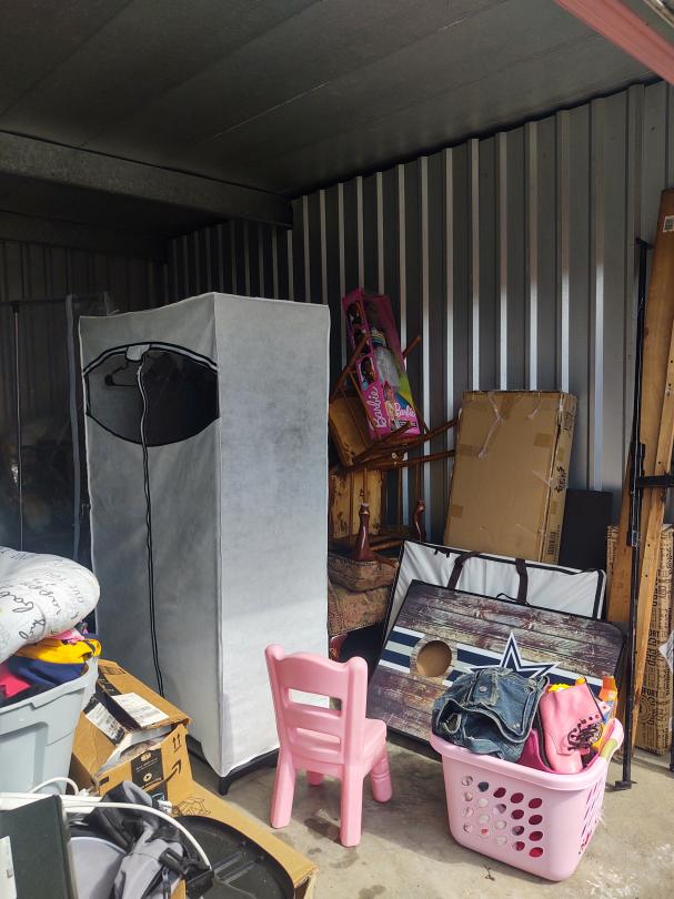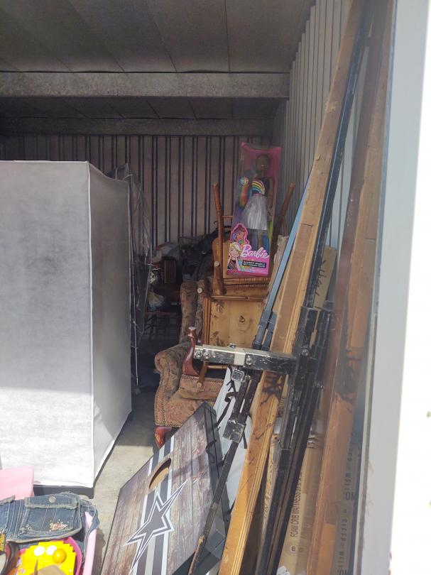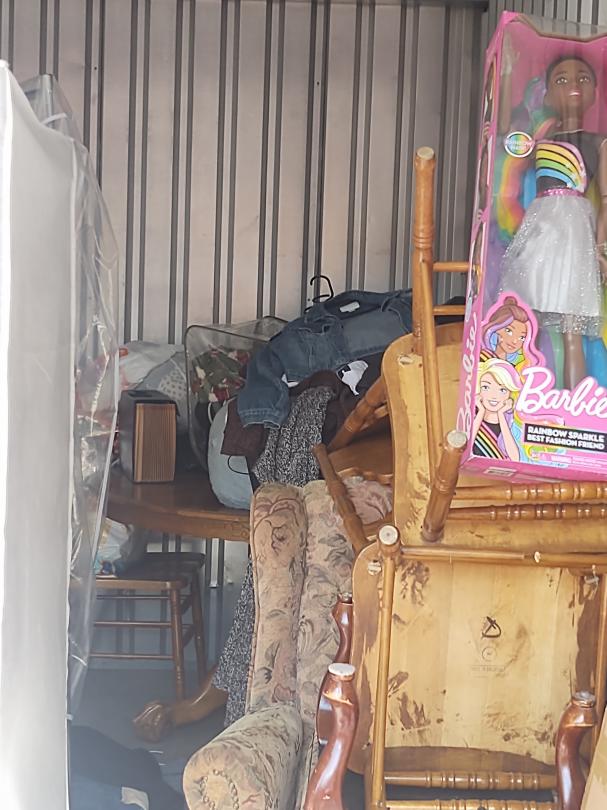 This unit appears to contain… Chairs, games corn hole, Bed Frames, kids, Chair, 3ft Barbie, Clothes, Kitchen Table and Chairs, Arm Chair