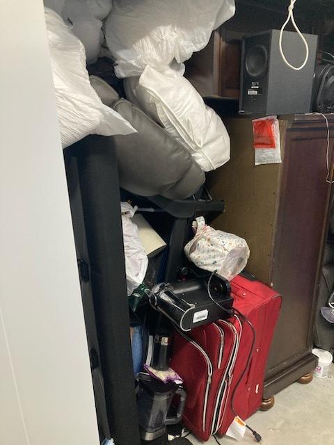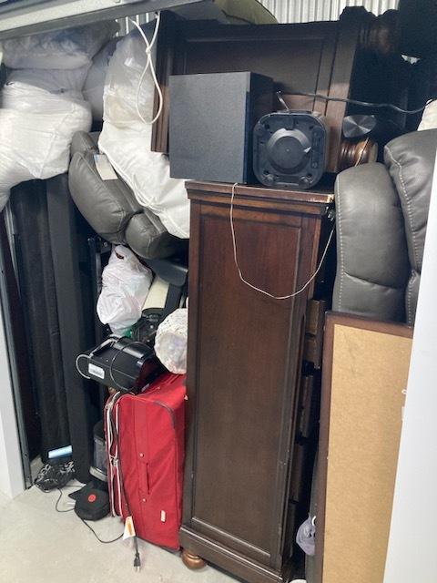 This unit appears to contain…Dresser Bed speaker suitcase end table pillow household items