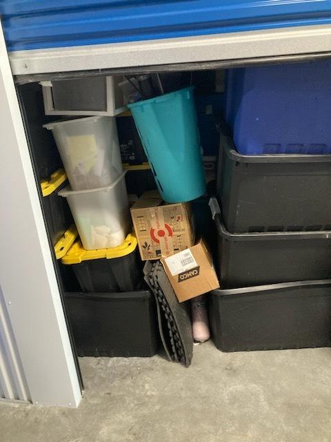 This unit appears to contain…Boxes Totes Chairs Luggage