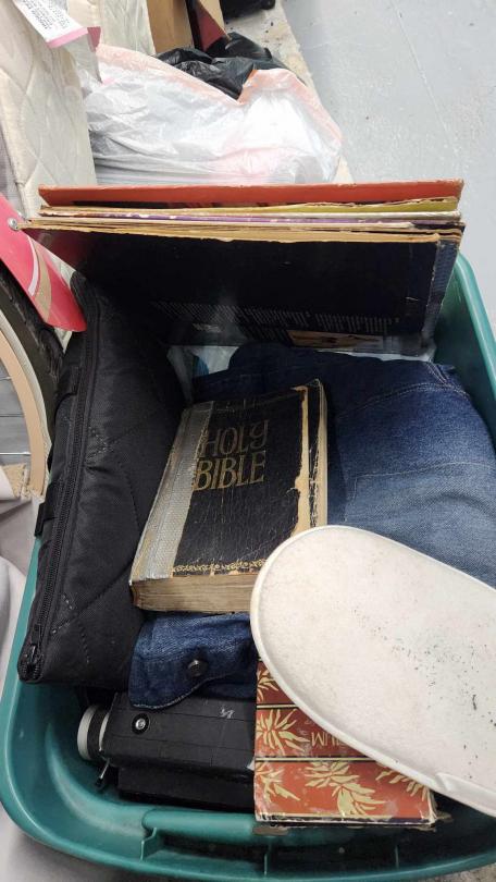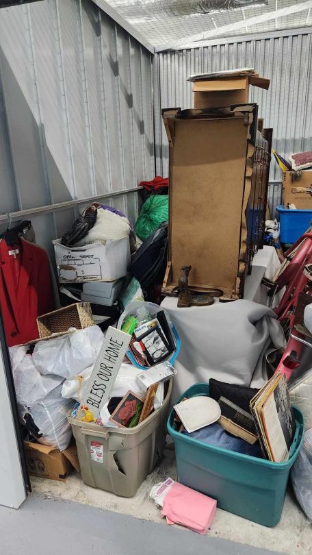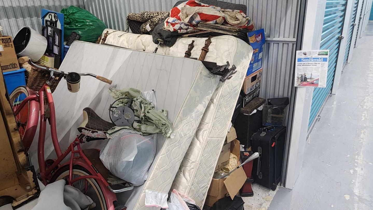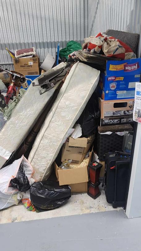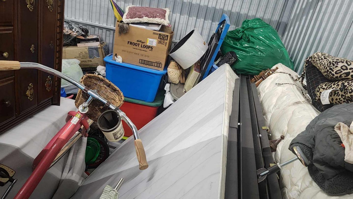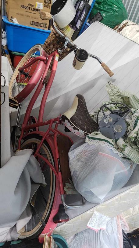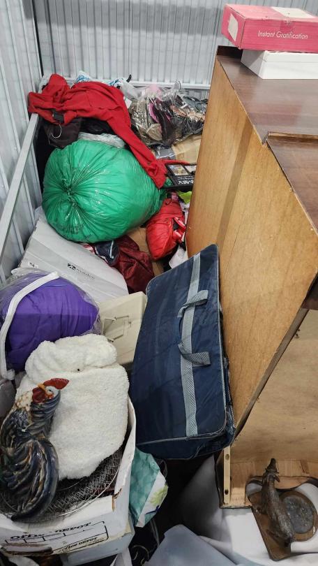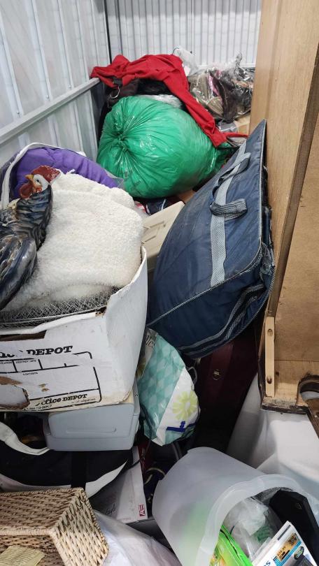 This unit appears to contain…boxes, bags, vinyl/albums, furniture, bicycles, bed.