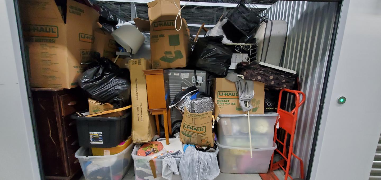 This unit appears to contain…BOXES/MATTRESS/DRYER/WASHER/DOLLY