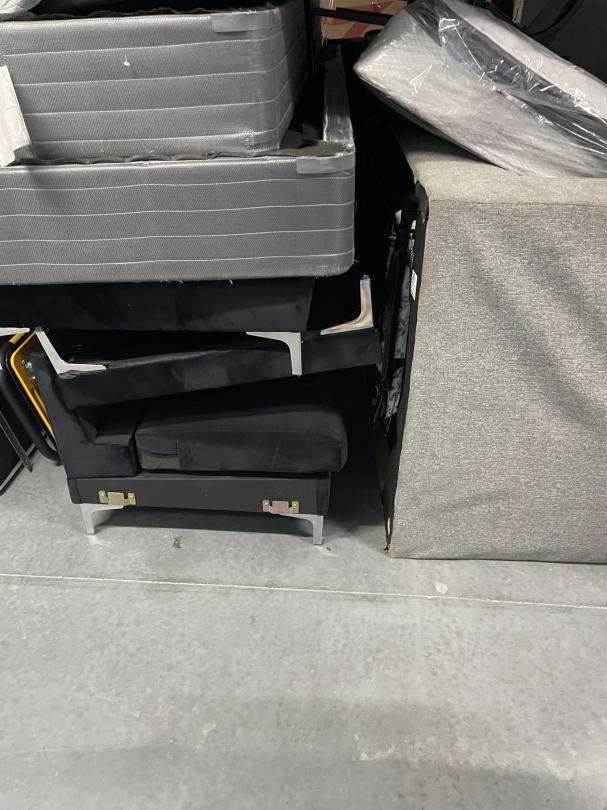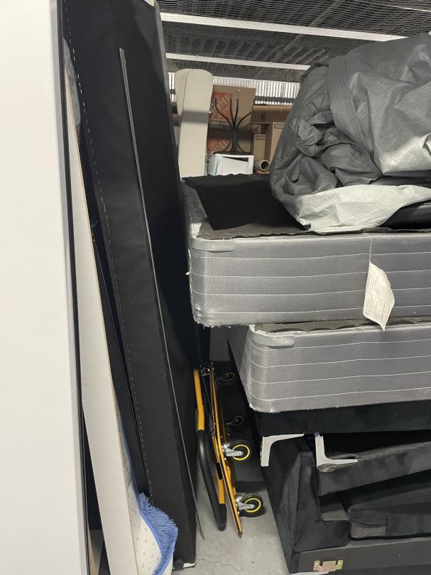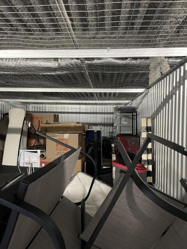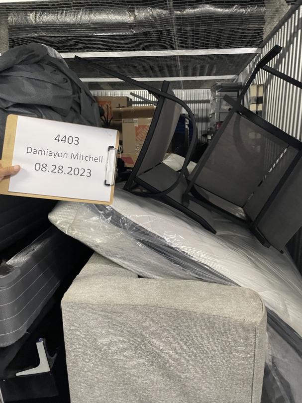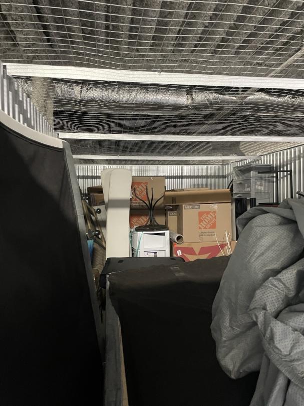 This unit appears to contain…2 couches, tables, mattress box spring, boxes totes, misc.