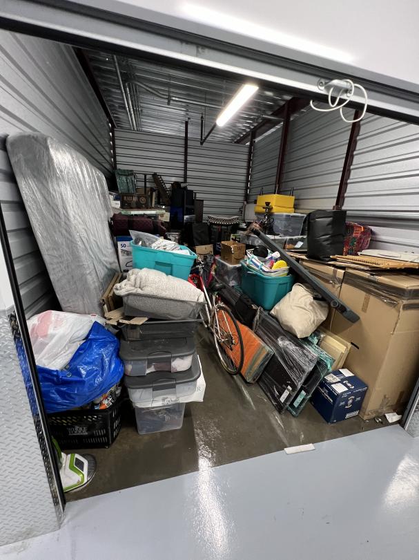 This unit appears to contain…Boxes, Bike, Bins, Luggage, Shoes and Mattress