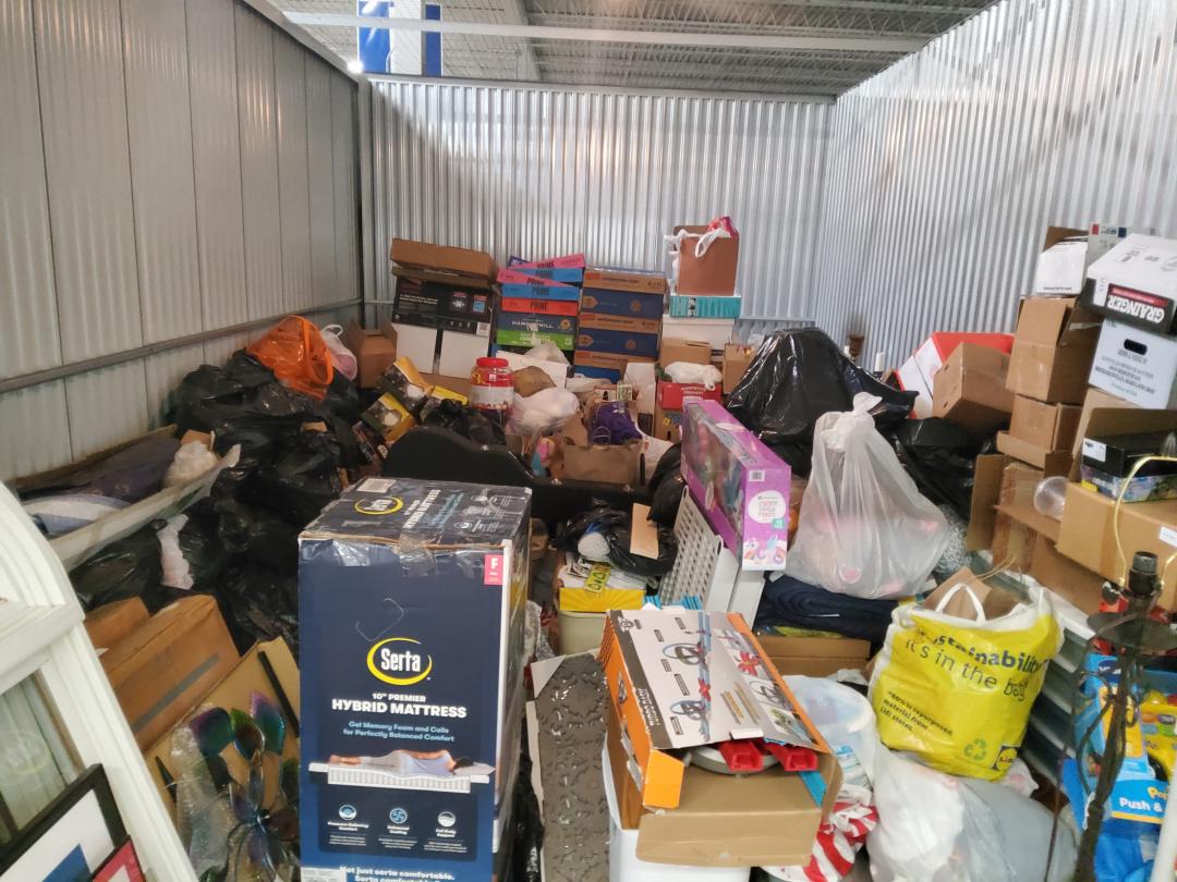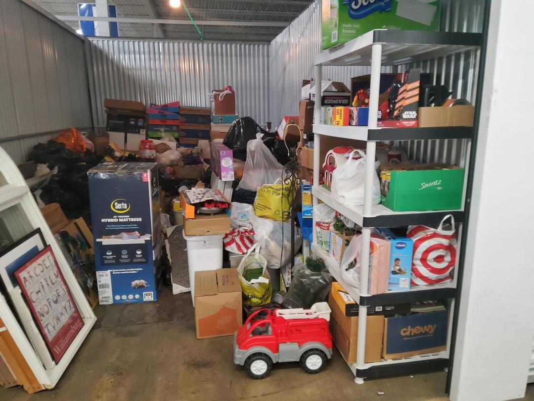 This unit appears to contain…Boxes, Shelf, Toys, Door Frame, Bags, Empty bottles, Other Items