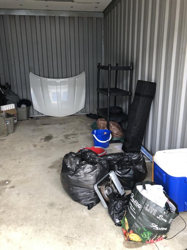 This unit appears to contain…Bags, Shelving, Totes, Car Hood, Cooler
