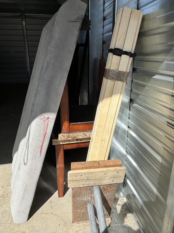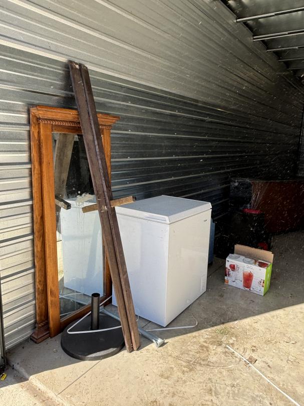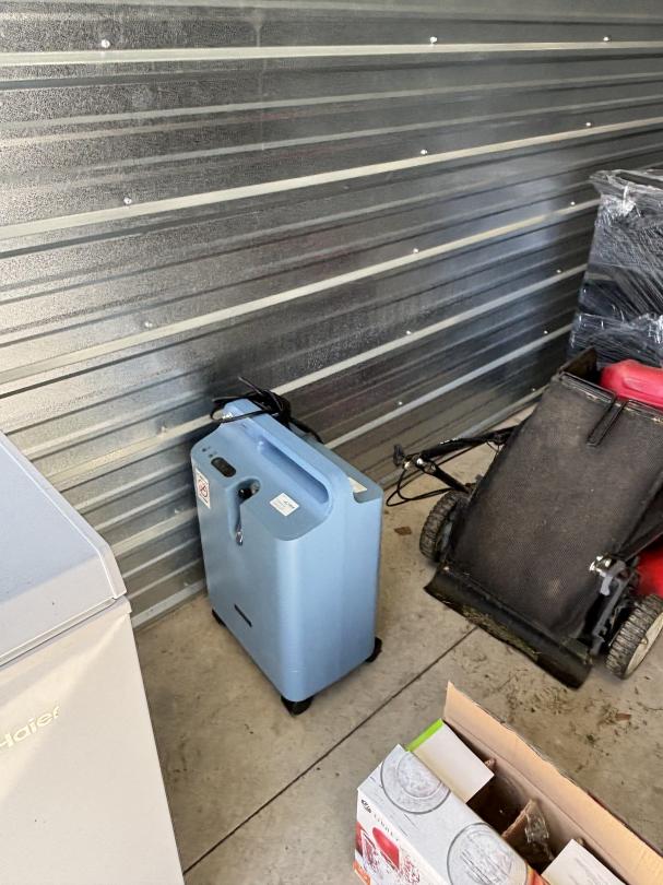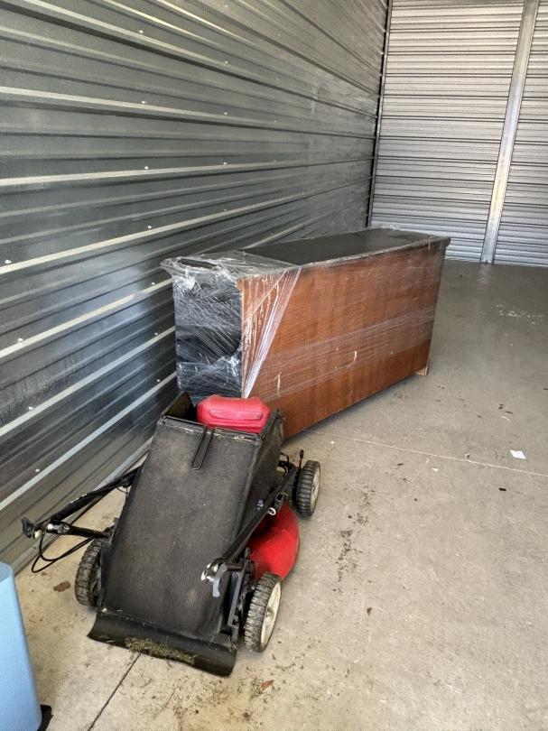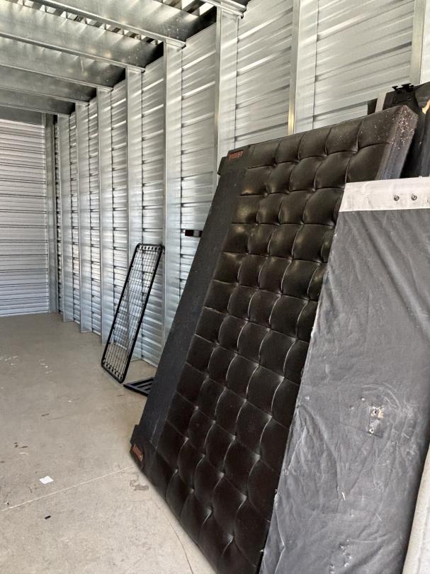 This unit appears to contain…Headboards, Bed Frame, Chest Freezer, Lawnmower, Gas Can, Dresser, Oxygen Concentrator, Mirror