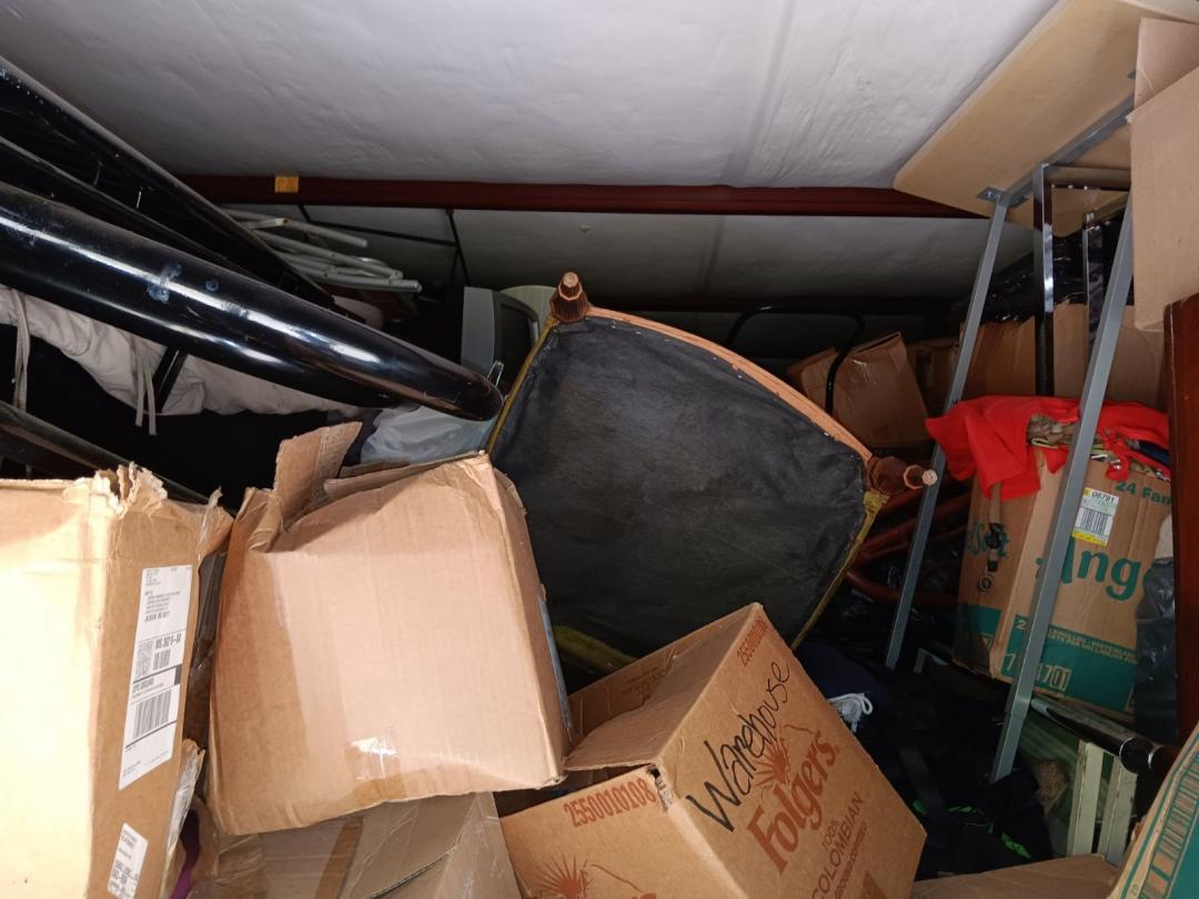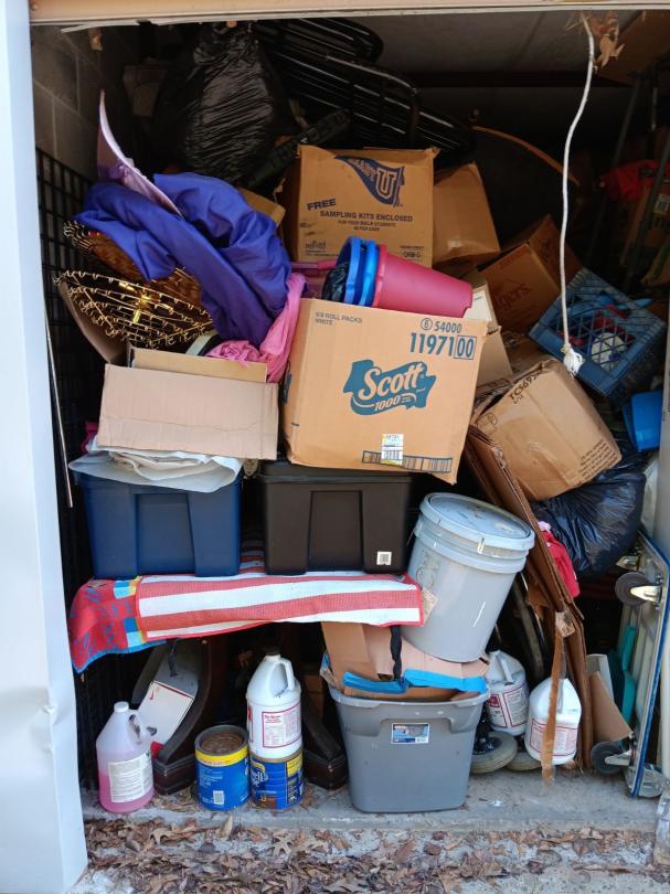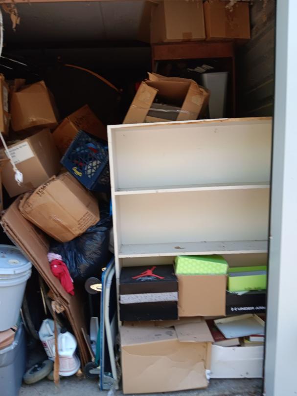 This unit appears to contain…Iron Bed Frames, Book Case, Boxes, Totes, Chairs, Misc Household Items, SEAL #7775005