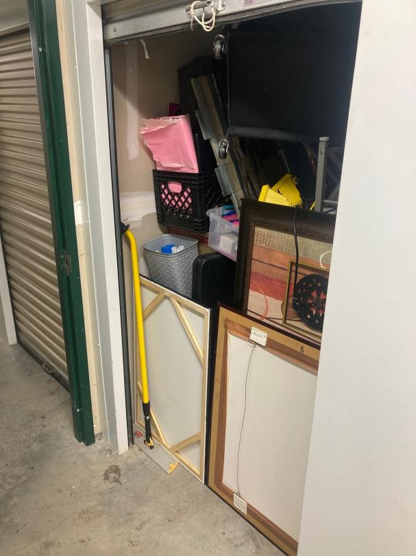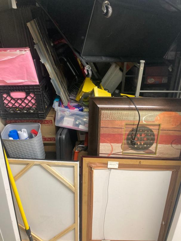 This unit appears to contain…Framed art, cleaning supplies, other items out of view