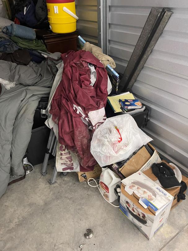 This unit appears to contain…Tools,Couches,Mattresses,Box Springs,Bed Frame,Dressers or Armoire,Decor,Plastic Bags,Plastic Containers,Misc. Boxes,Clothing,Misc. Items,Exercising Equip.,Suitcases,Artwork,Coolers