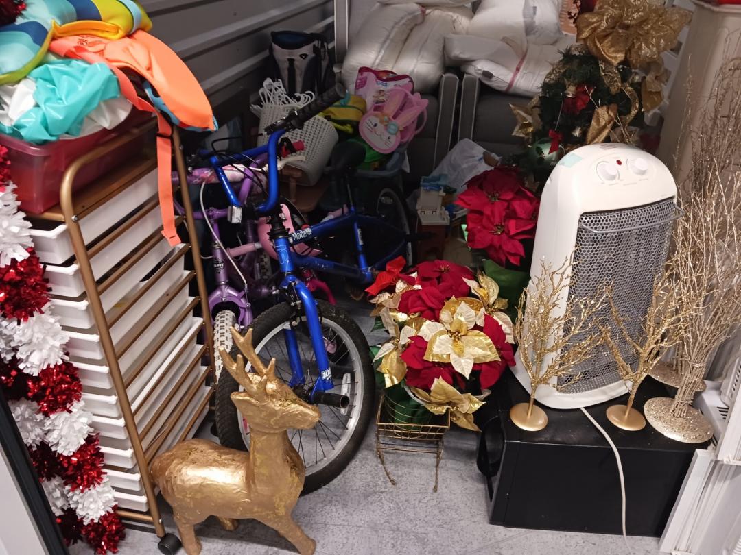 This unit appears to contain…Bikes,HVAC Equip.,Mattresses,Dressers or Armoire,Chairs,Decor,Plastic Containers,Misc. Boxes,Misc. Items,Baby Furniture,Toys