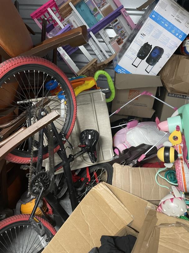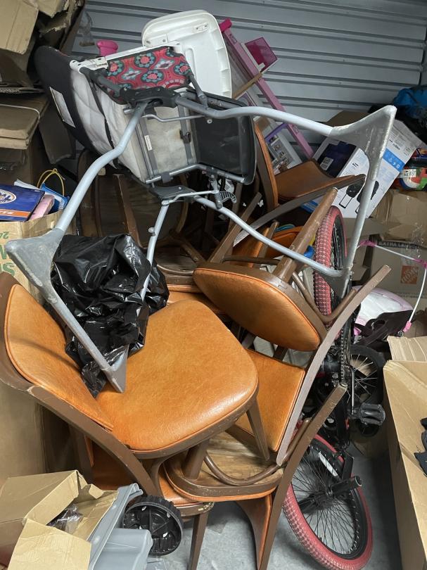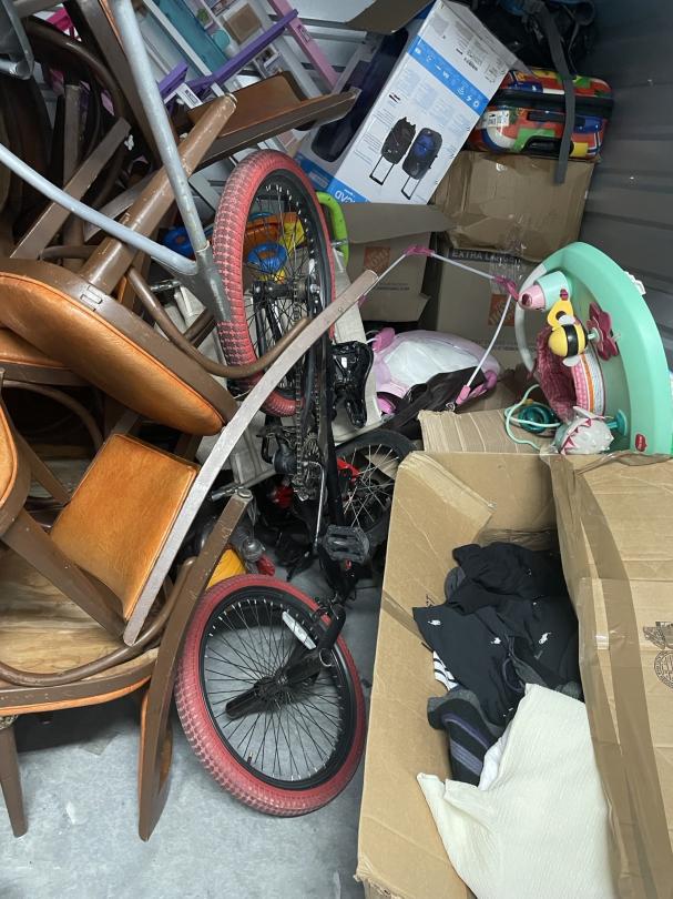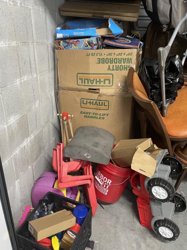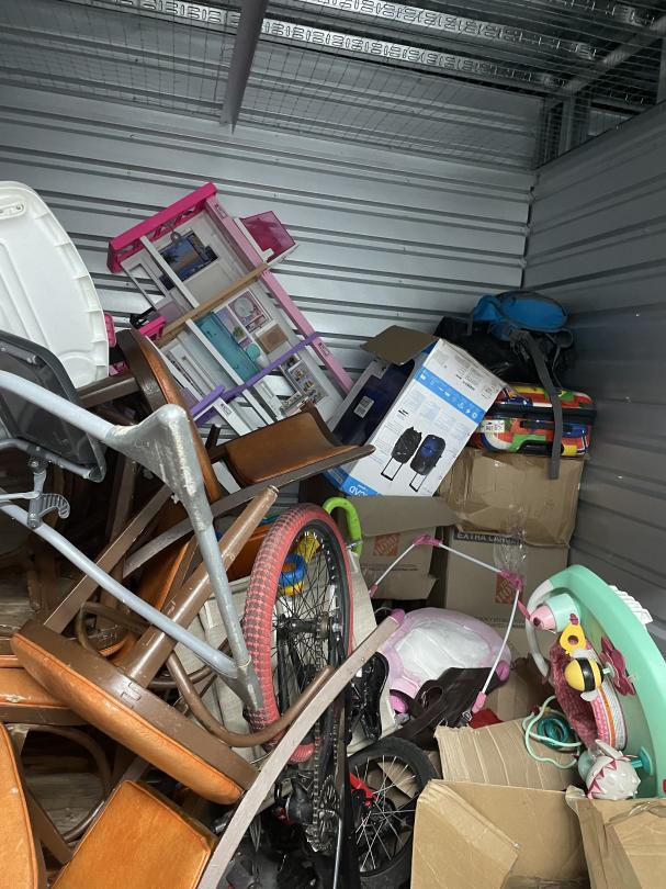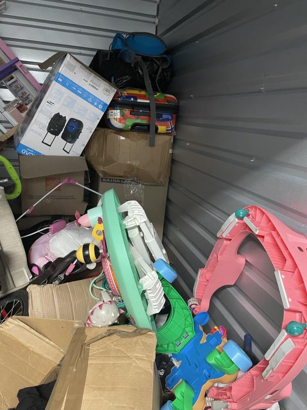 This unit appears to contain…Boxes, Bags, Chairs, Tools, Toys 10X10X8CC