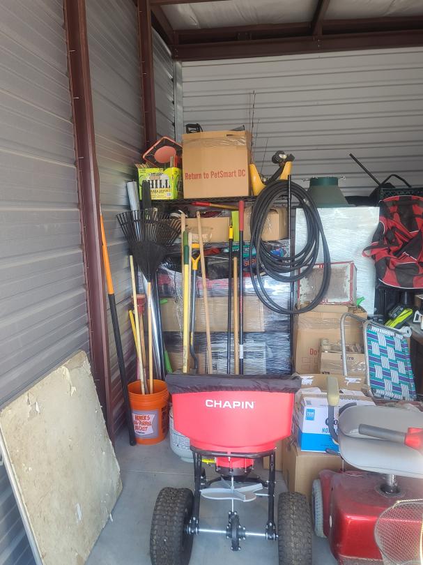 This unit appears to contain…Drive-Up Access Four Wheeler, Household Items