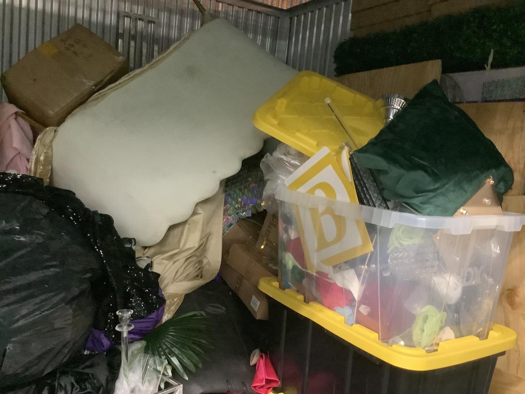 This unit appears to contain…Unit appears to contain bins, folding table, event decorations, sofa seal 1837843