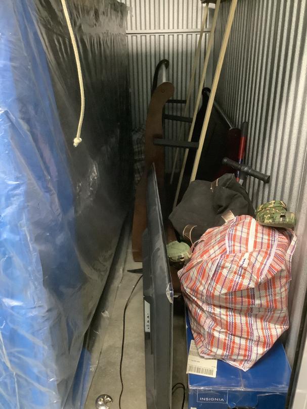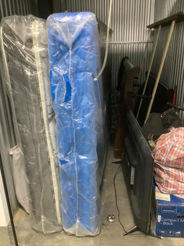 This unit appears to contain…Unit appears to contain mattress, bed frame, t.v, suitcase, boxes, bins seal 1837883