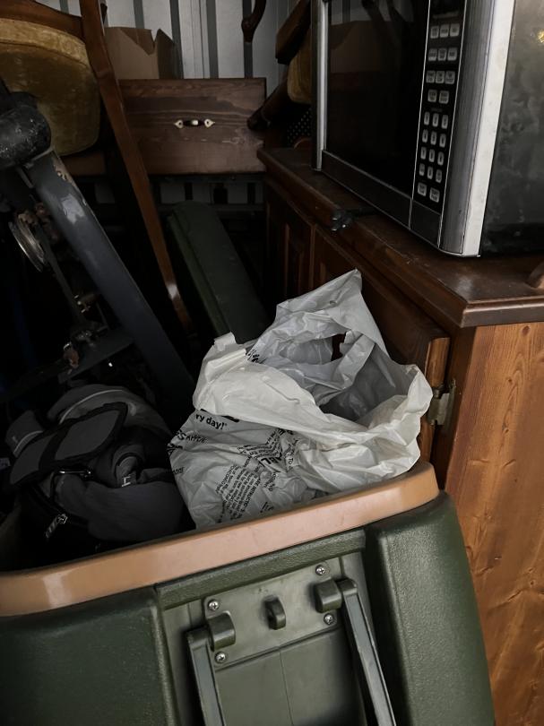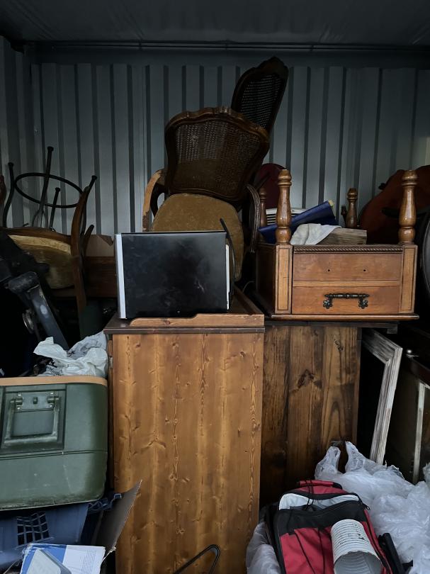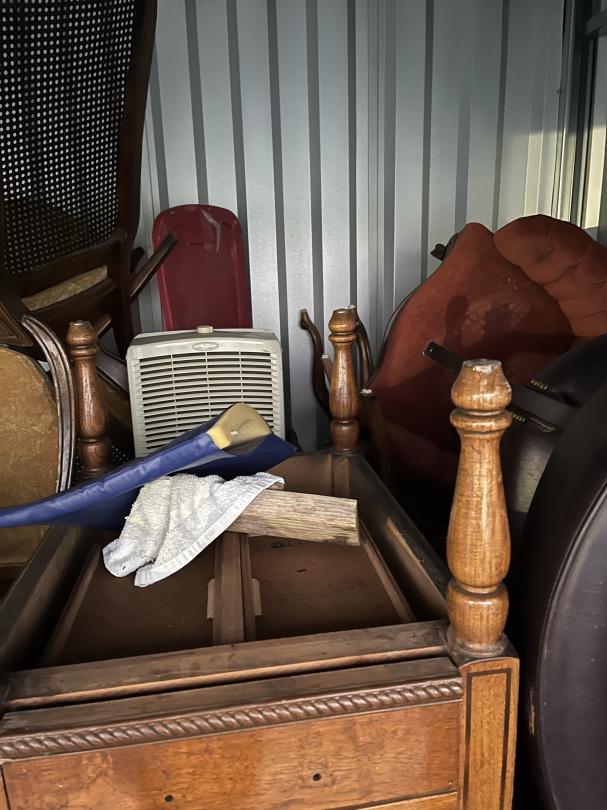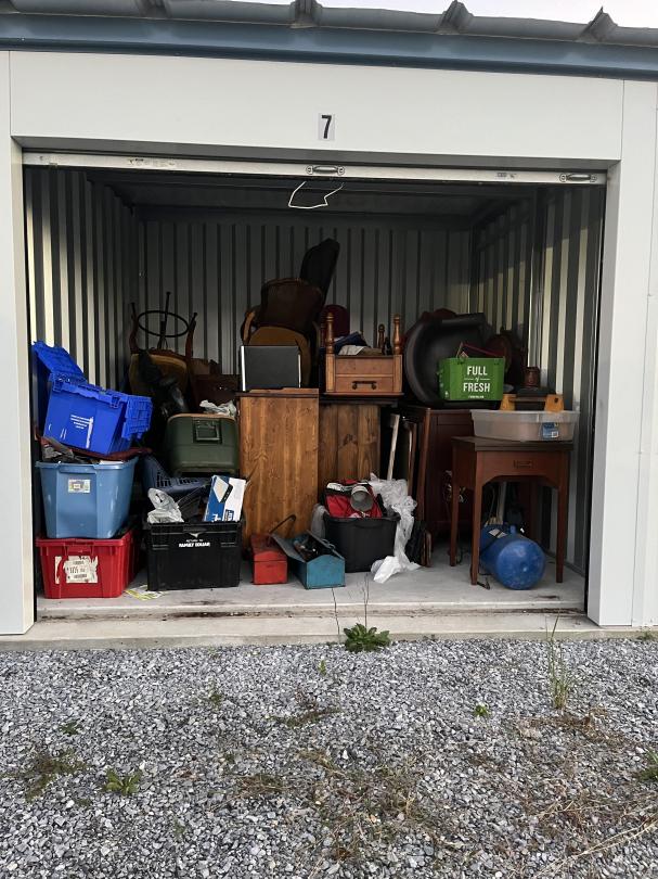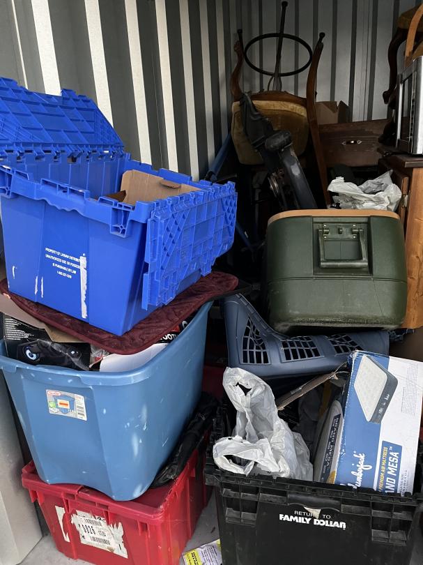 This unit appears to contain…household items, tools, lawn mower