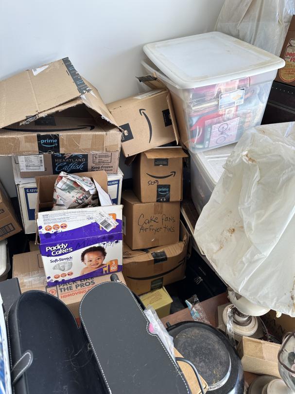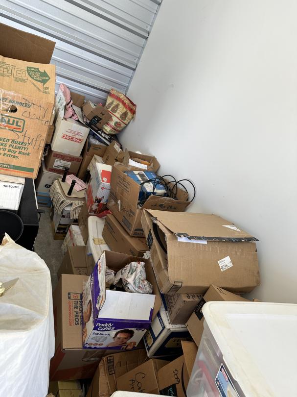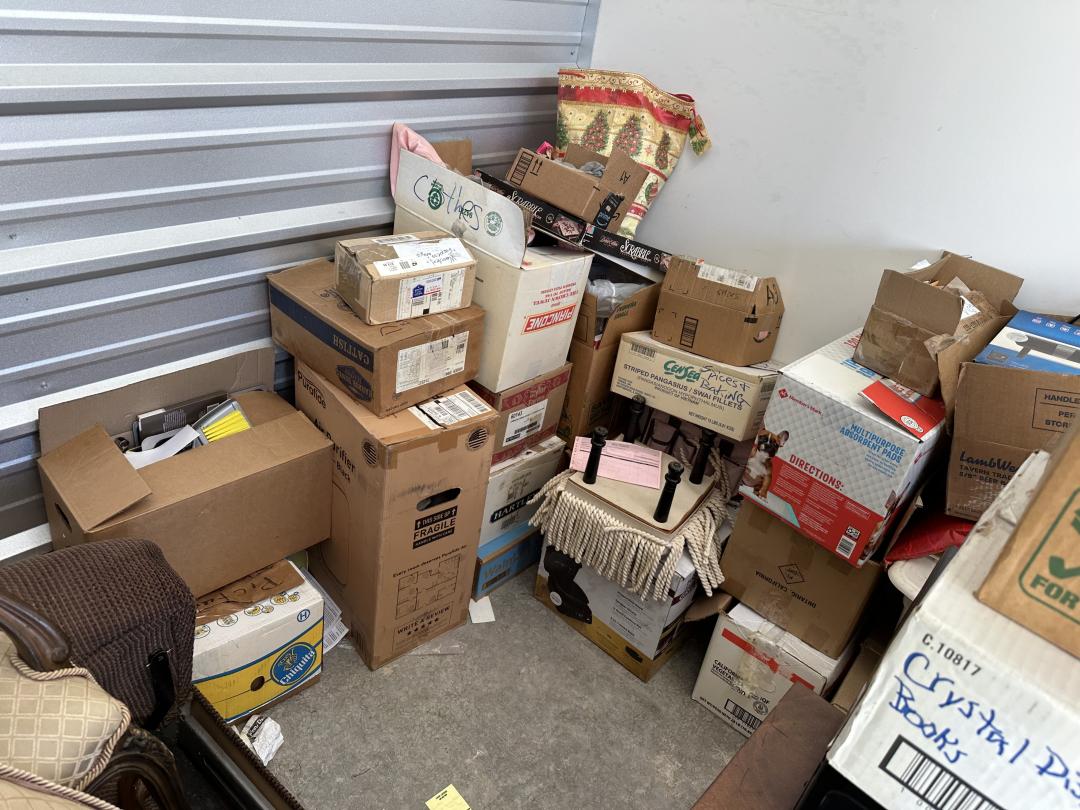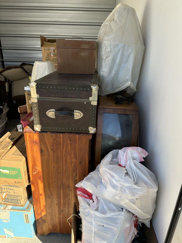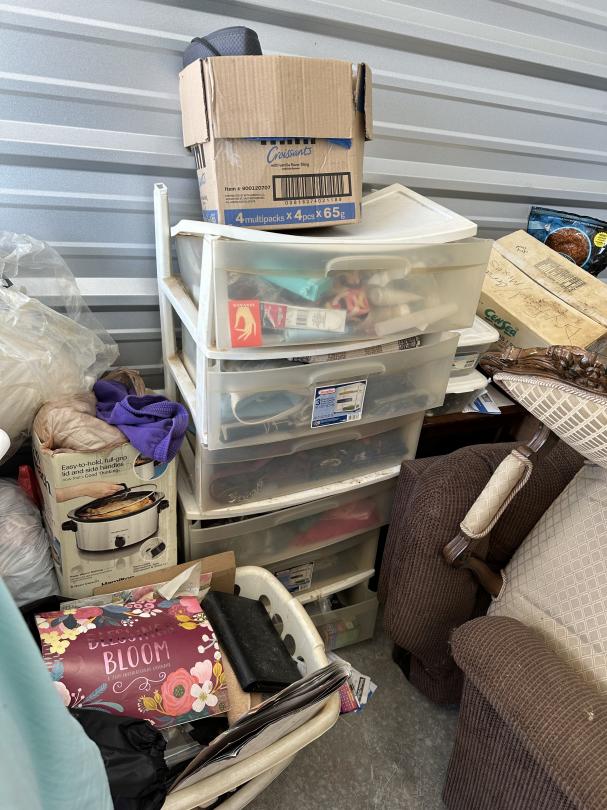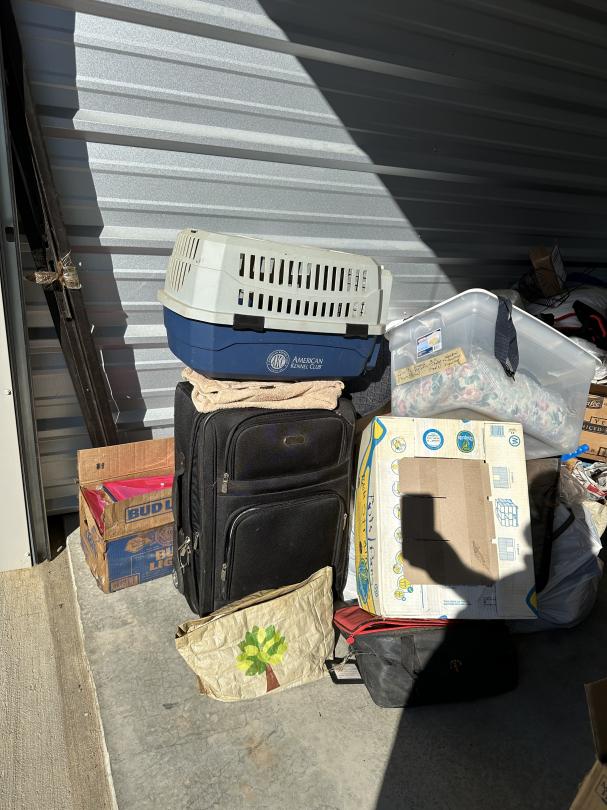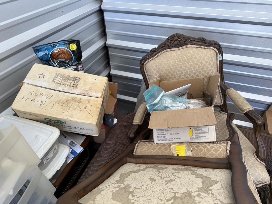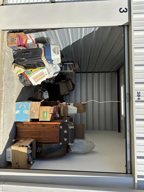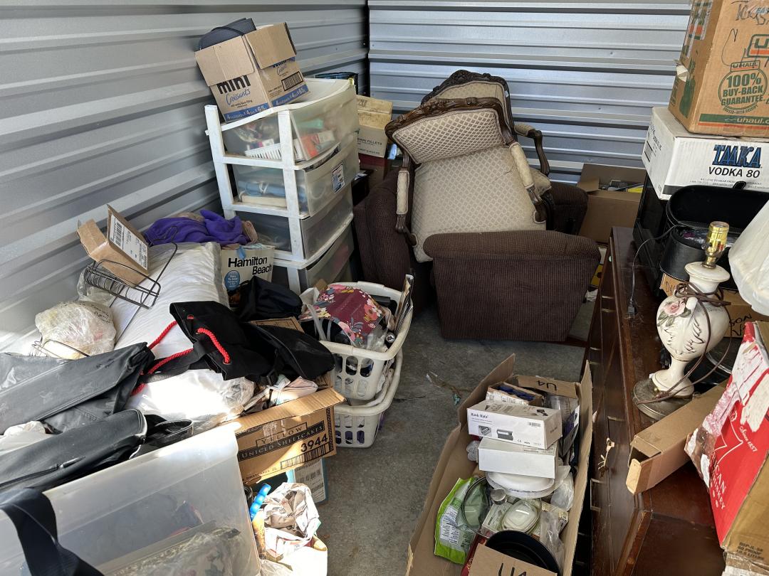 This unit appears to contain…Outside Access, furniture, luggage, boxes, totes, chairs, makeup, pet carrier, lamps, microwave, hot plate, electronics