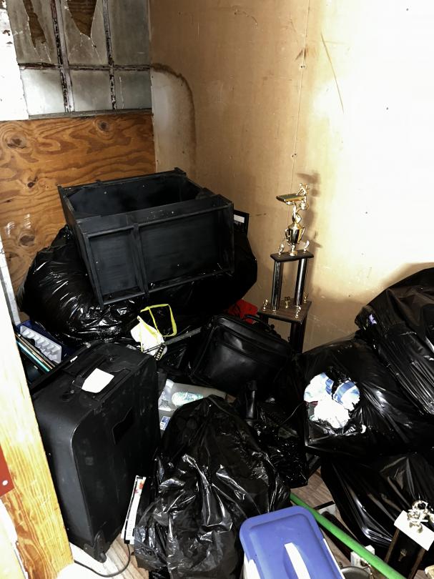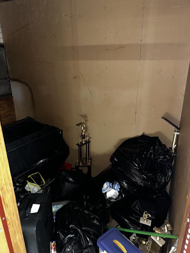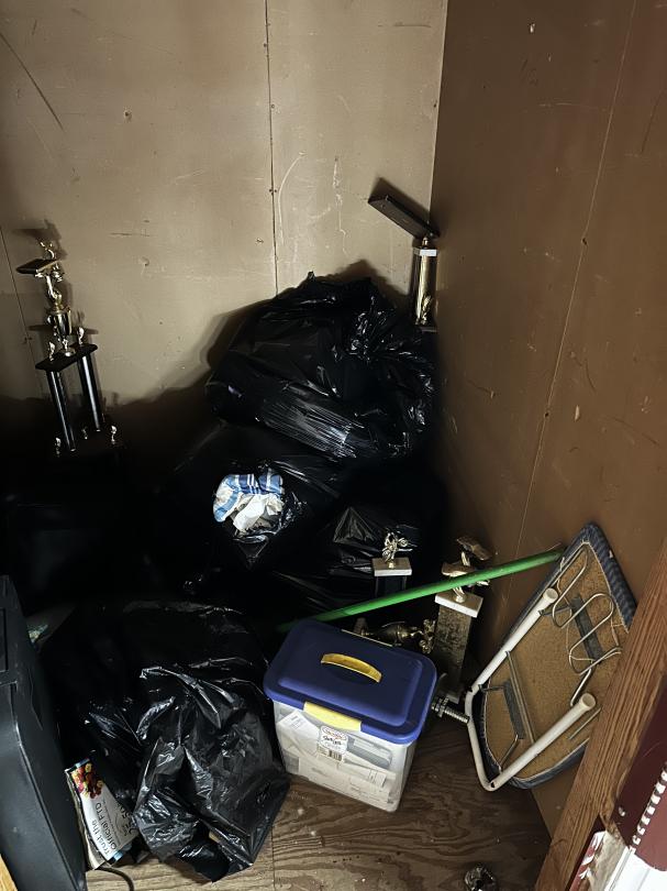 This unit appears to contain…Bags, trophies, suitcase. MISC