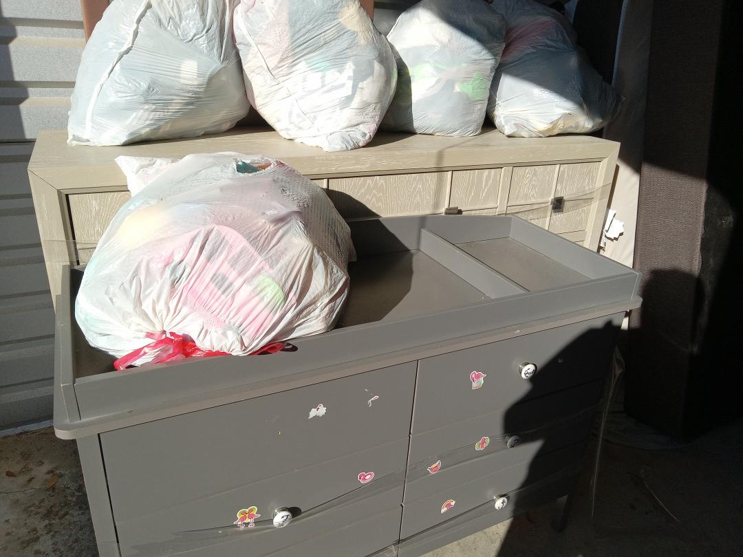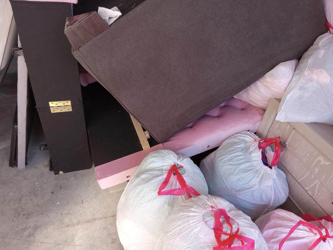 This unit appears to contain…Dresser, Beds, Bed Frames, Love seat, clothes, headboards