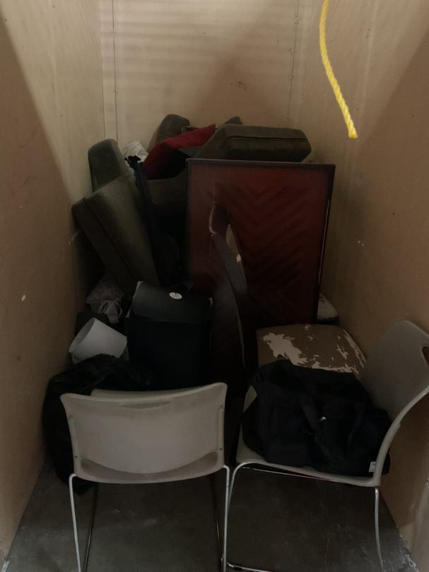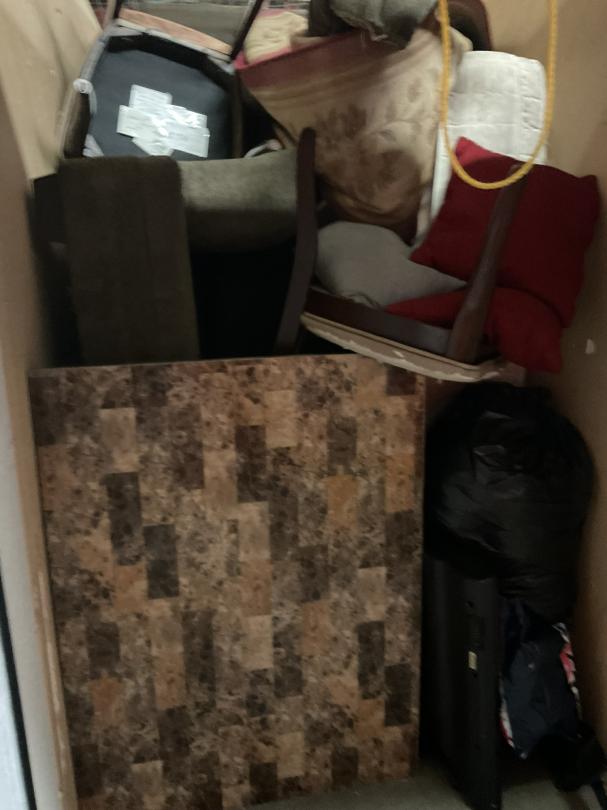 This unit appears to contain…chairs couch tv mattress rug pillows bags