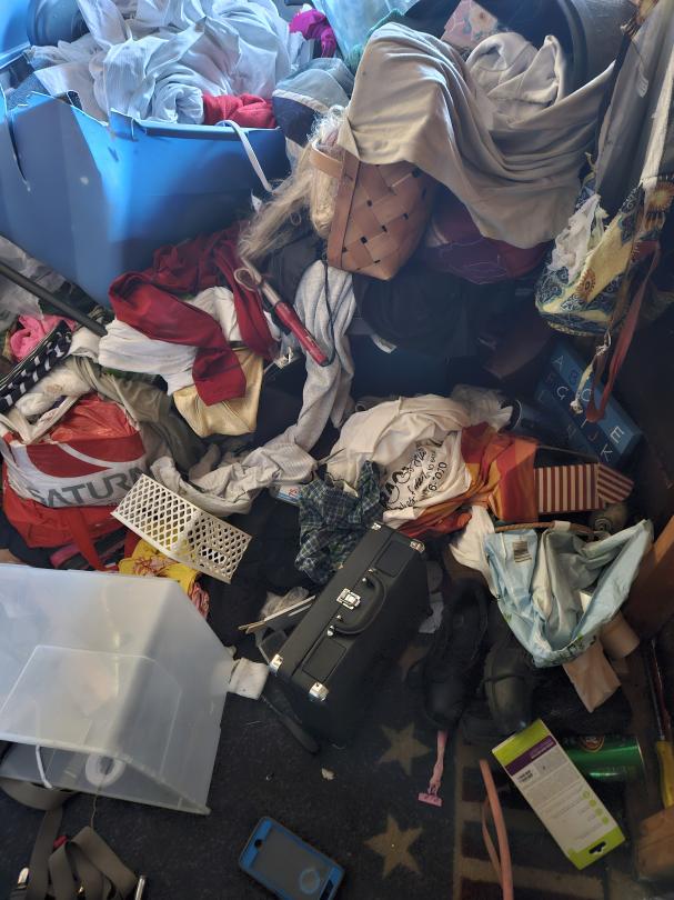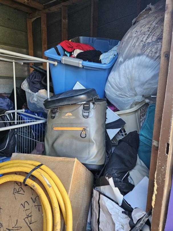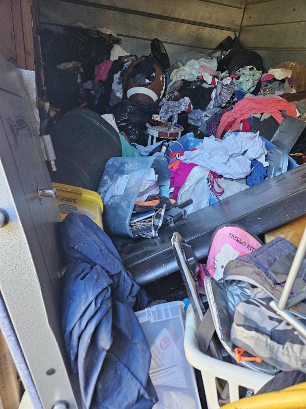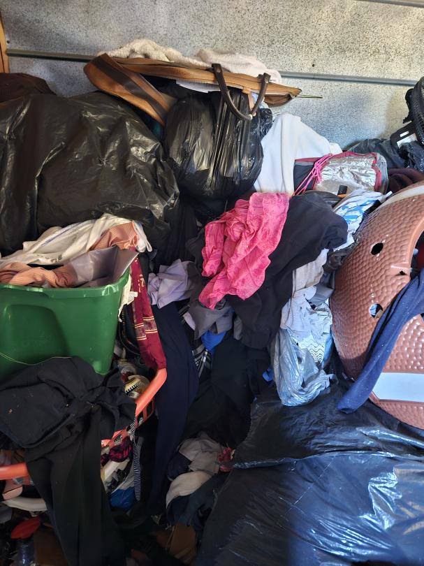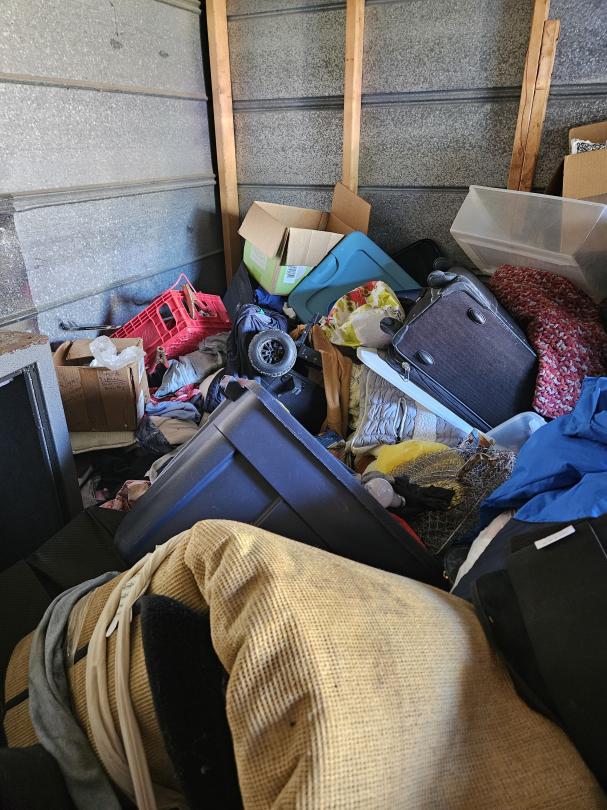 This unit appears to contain…10x20 unit with a mountain of stuff piled high! Will definitely need a haul off trailer to remove the belongings that are not wanted.