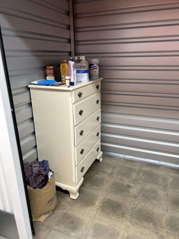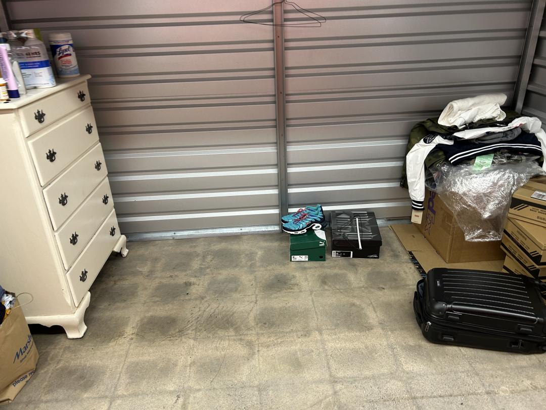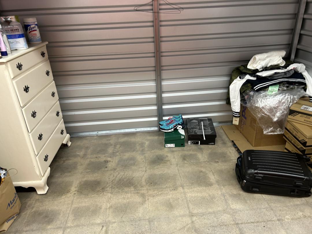 This unit appears to contain…READ ALL AUCTION RULES BEFORE BIDDING!!! Unit appears to contain: dresser, suitcase, shoes, clothes, toiletries, fridge organizers