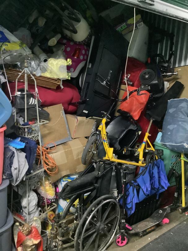 This unit appears to contain…Unit appears to contain bags, bins, toys, table, clothing, boxes seal # 1837879