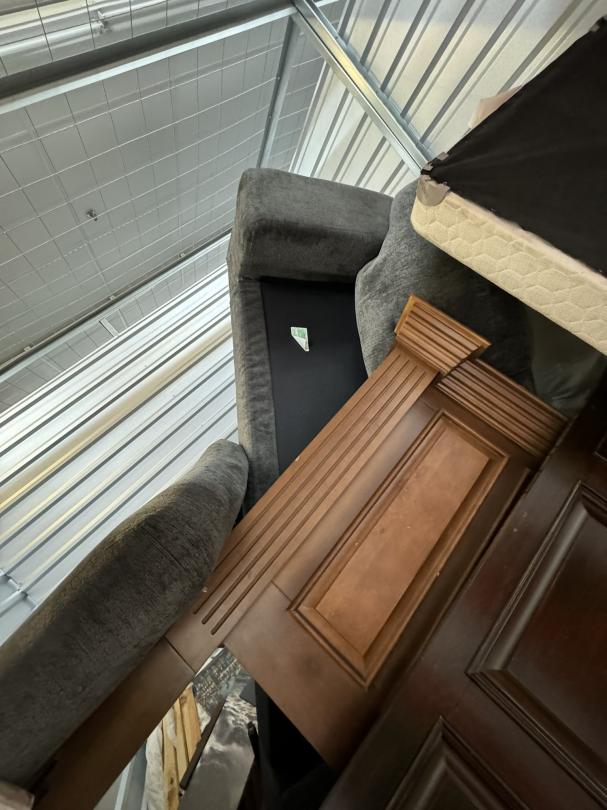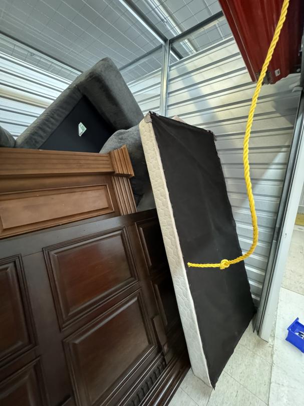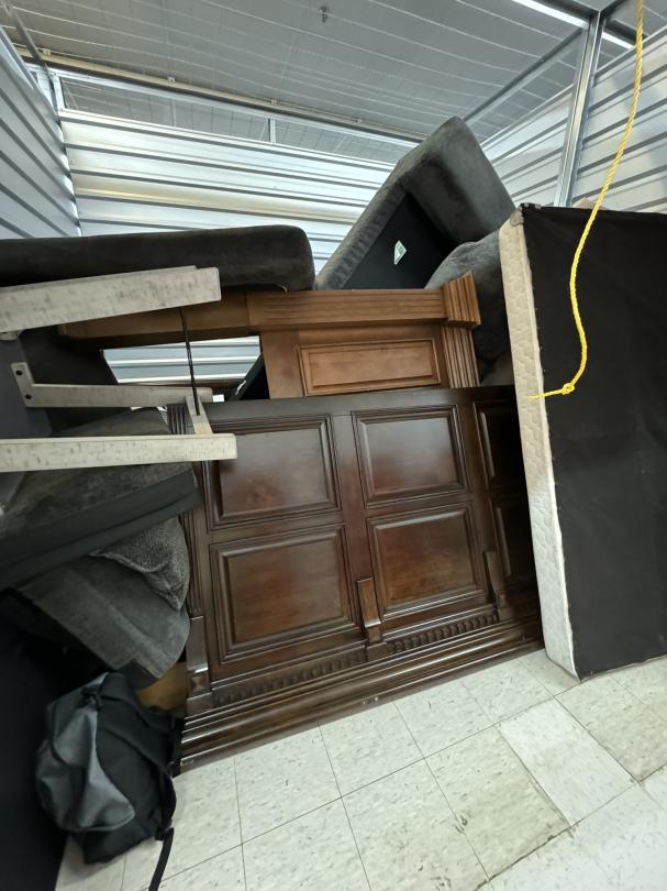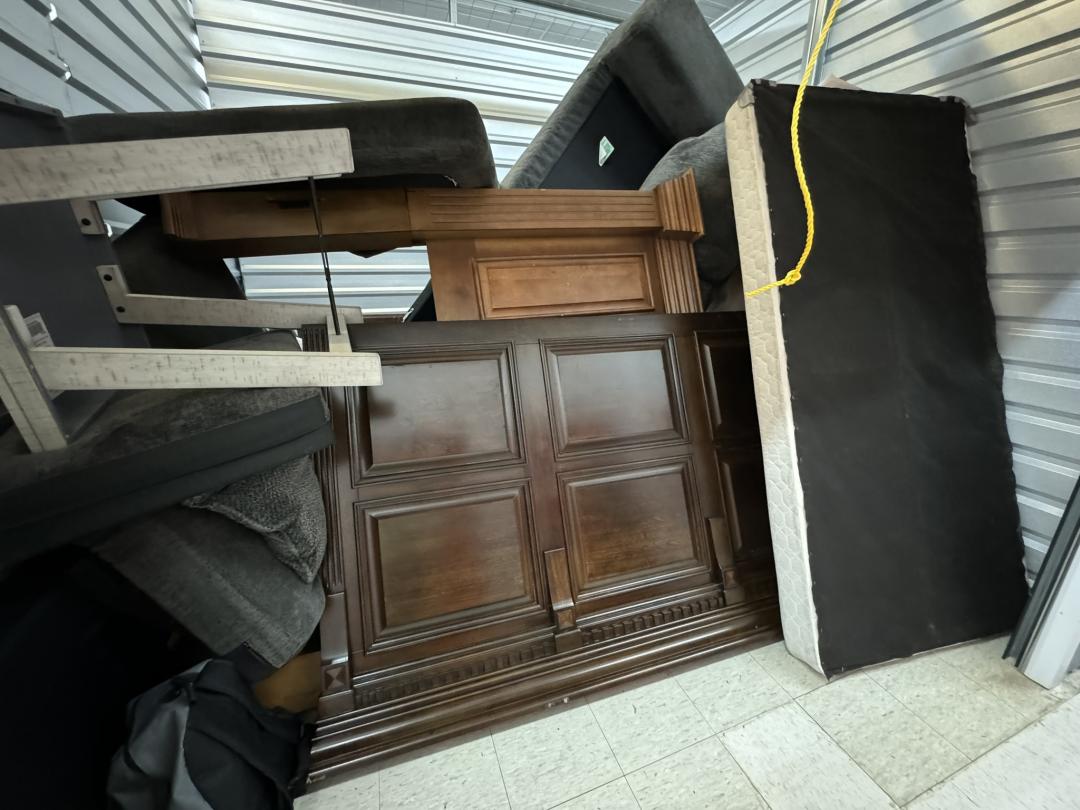 This unit appears to contain…Unit appears to contain: headboards, pictures, book bags, box springs, small side tables, dresser mirror