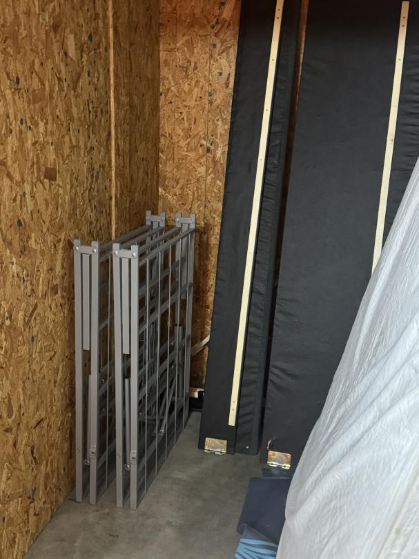 This unit appears to contain…Unit appears to contain: mattress, headboard, fold-up bed frame