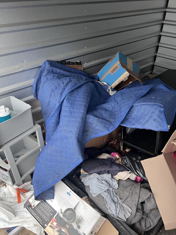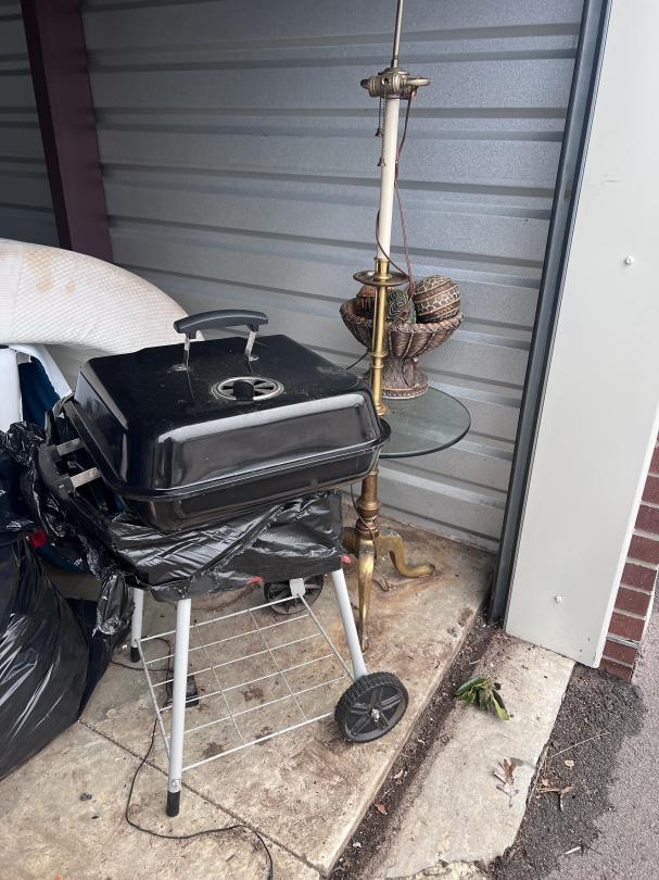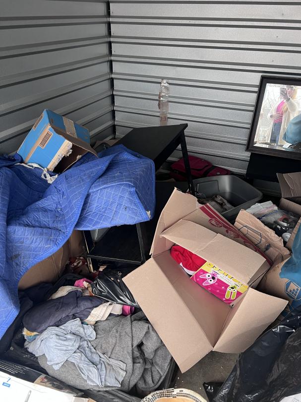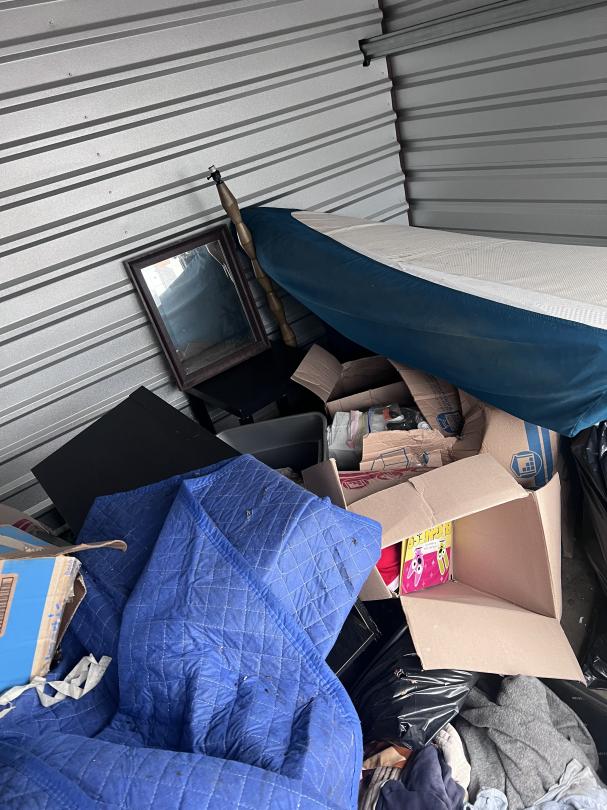 This unit appears to contain…mattress , lamp, vase, boxes, mirror, bags, grill