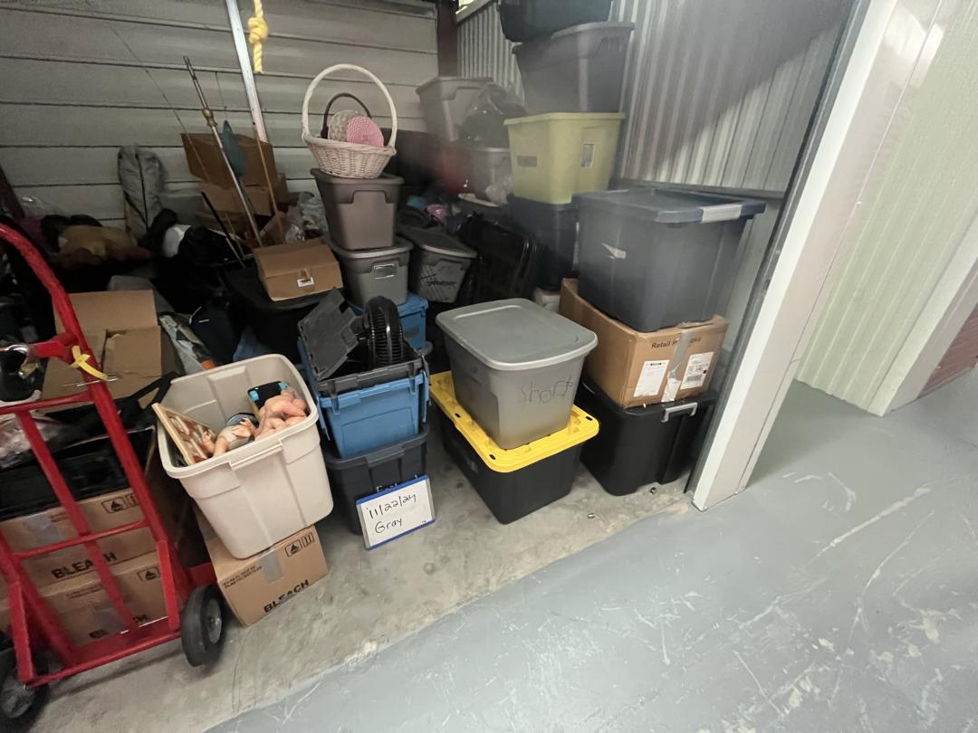 This unit appears to contain…TOTES, BOXES, FISHING POLES, TOYS, TENTS, HOUSEHOLD MISC.