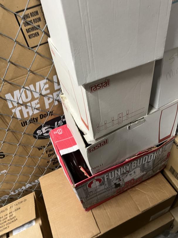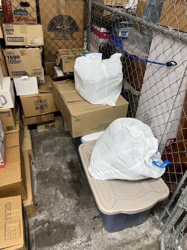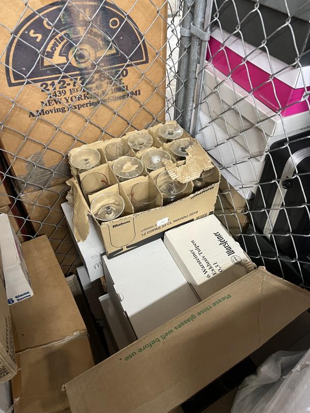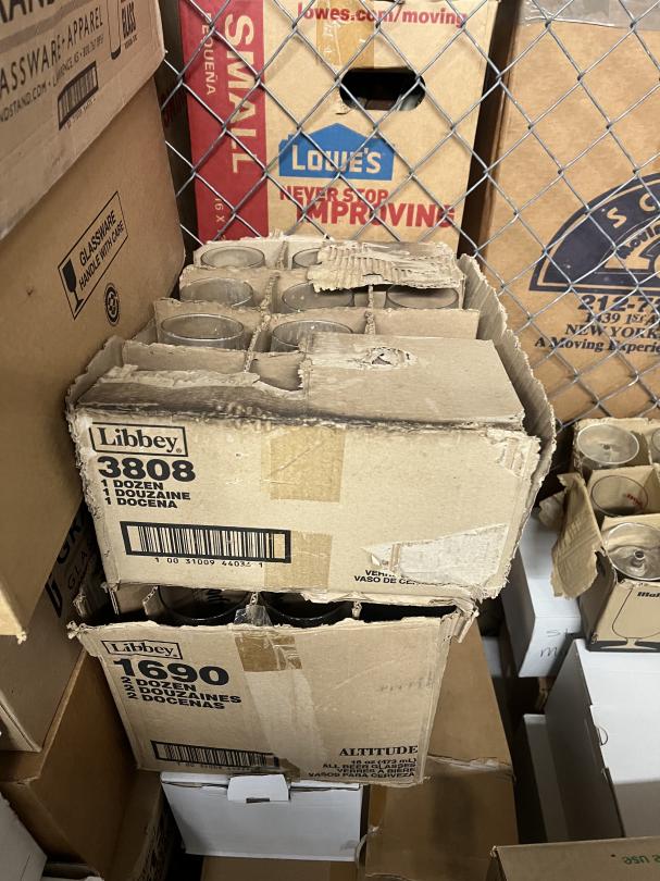 This unit appears to contain…Unit contains mostly boxes of glassware. $50 cleanout deposit