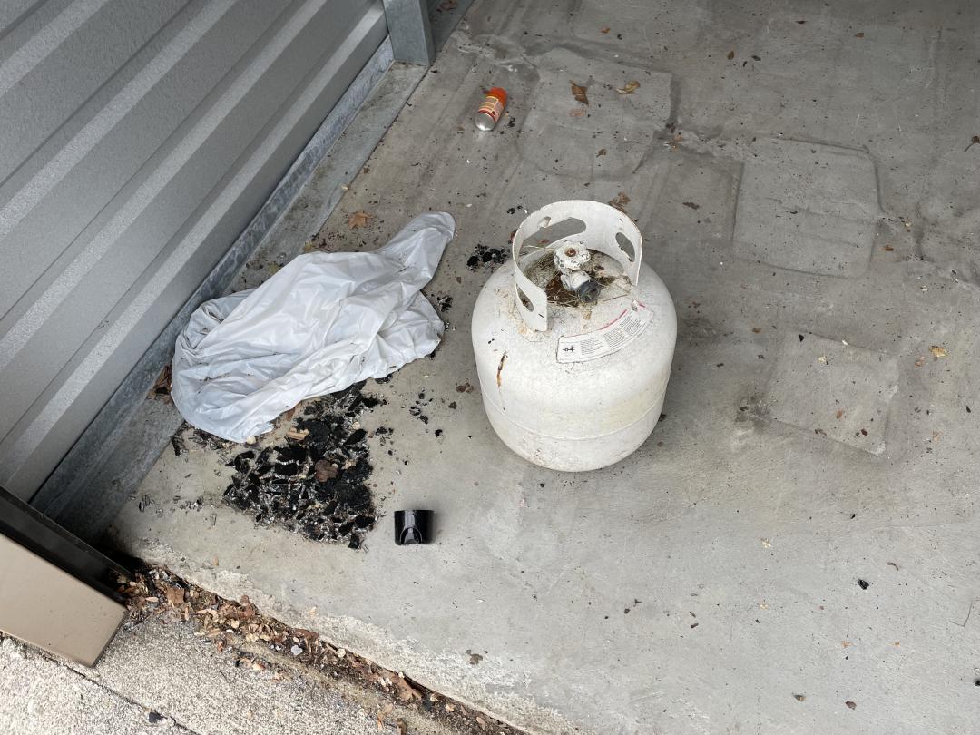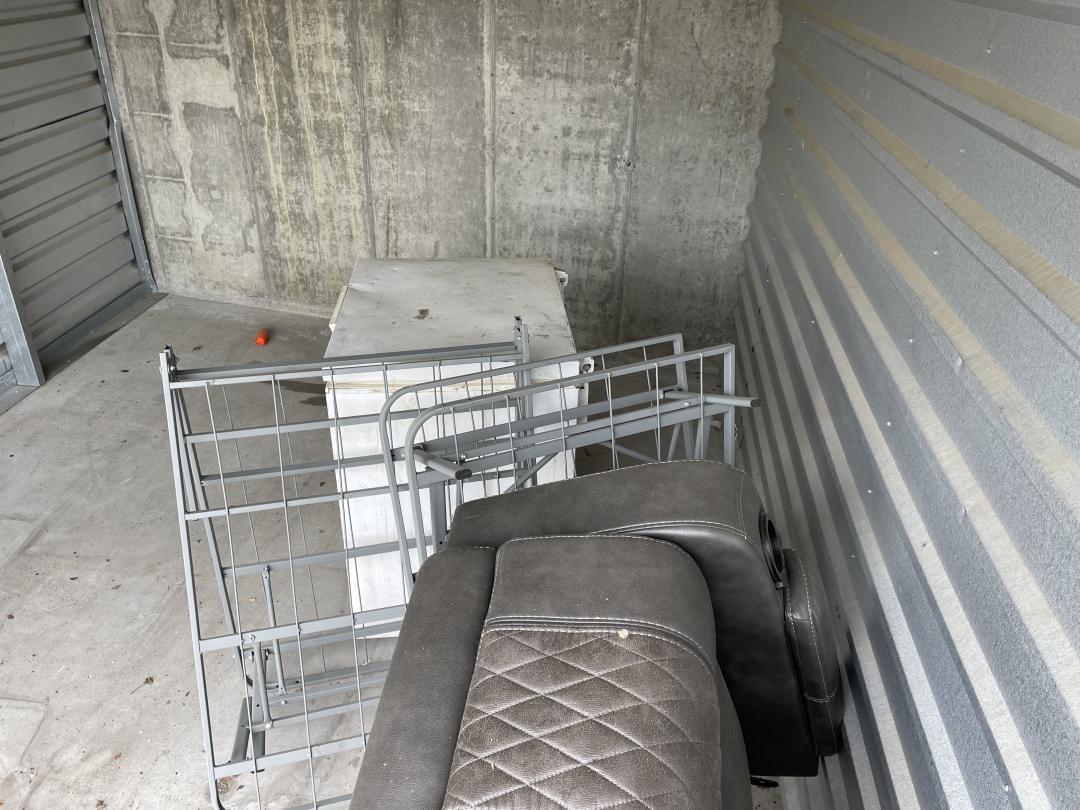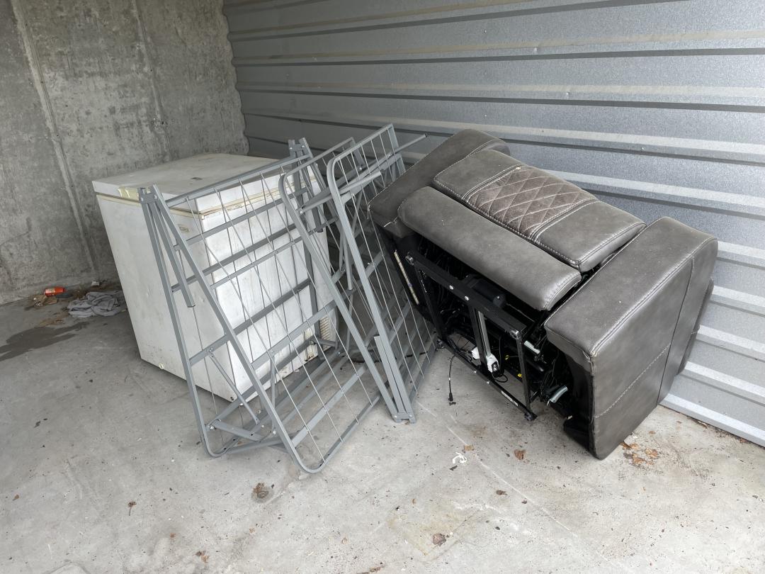 This unit appears to contain…LPG tank, chair, cot frames, freezer, suitcase, etc.