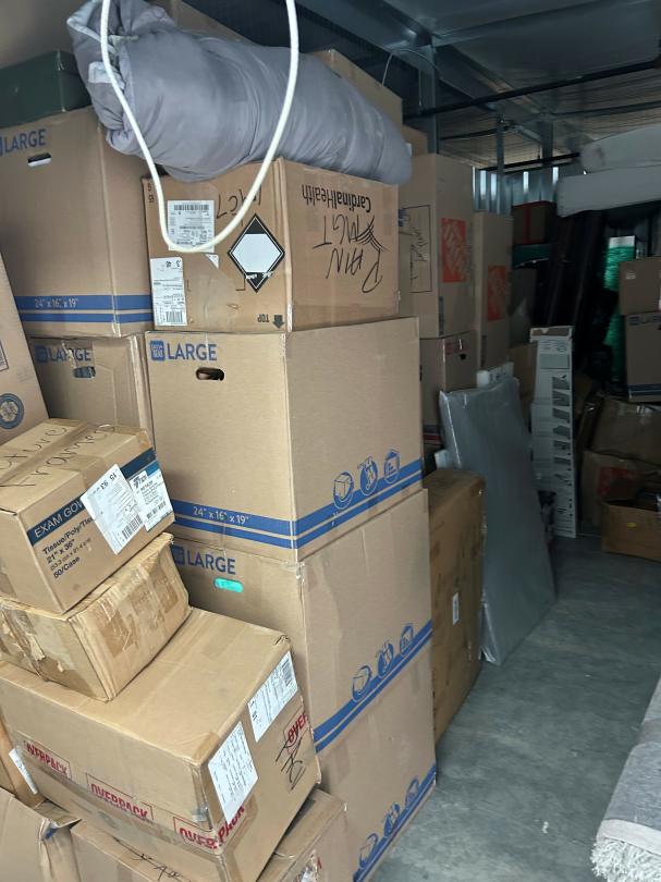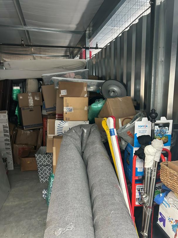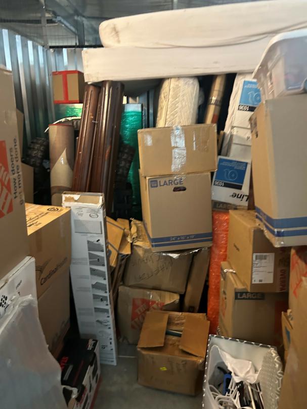 This unit appears to contain…Many Boxes of items , Boat Ores, Refrigerator, Beds, Bins of items, Lamps ,picture frames