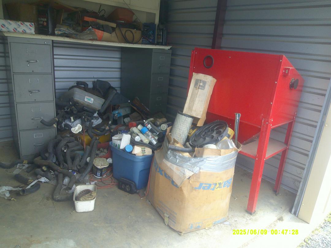 This unit appears to contain…UNIT IS NOT CLIMATE CONTROLLED AND APPEARS TO CONTAIN: SANDBLASTING CABINET, VARIOUS SIZES AND BRANDS AND TYPES OF AUTOMOTIVE/EQUIPMENT TYPE FILTERS AND HOSES, A SET OF CABINETS, TWO FILE CABINETS, AND OTHER MISCELLANEOUS THINGS.